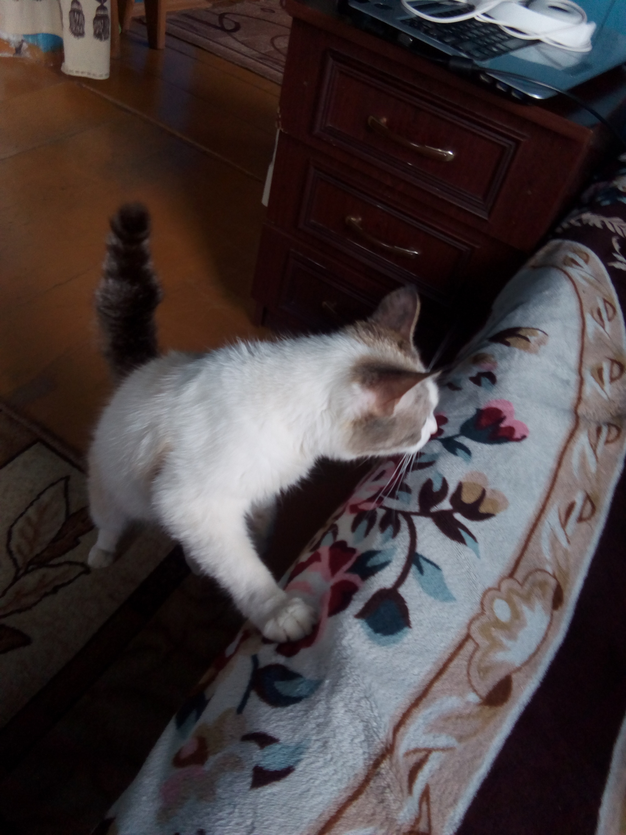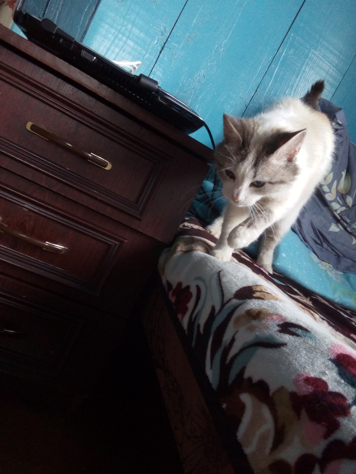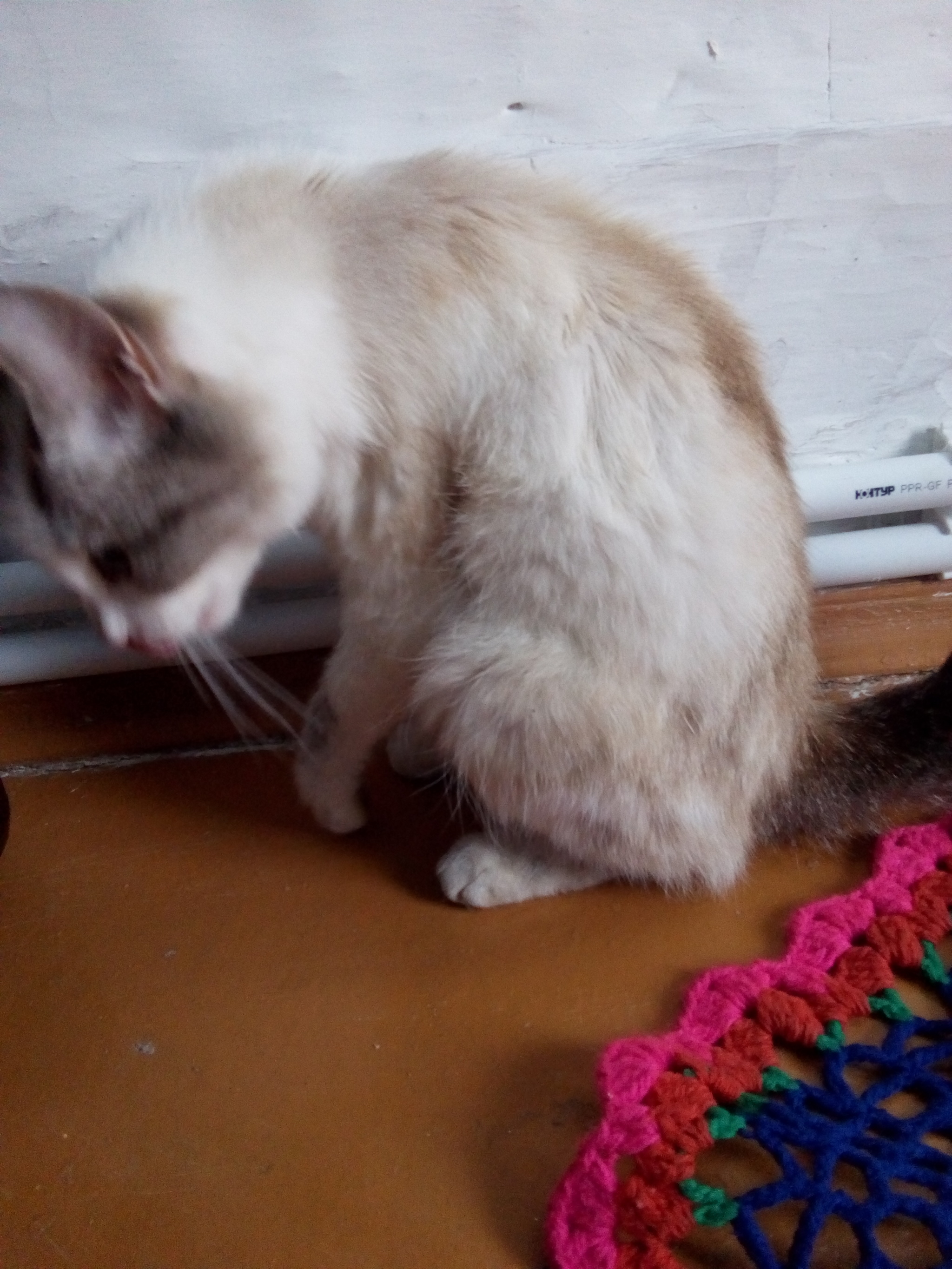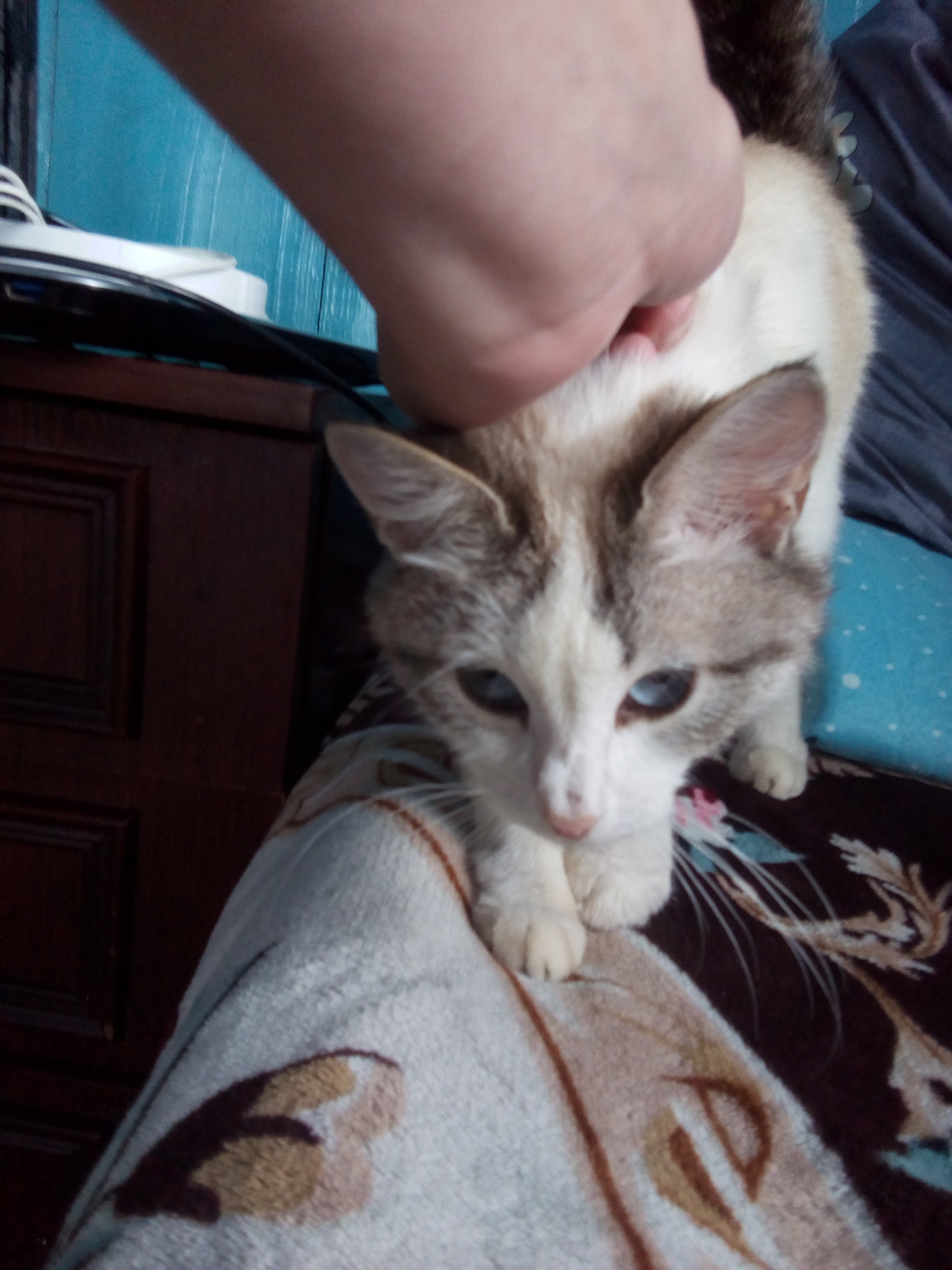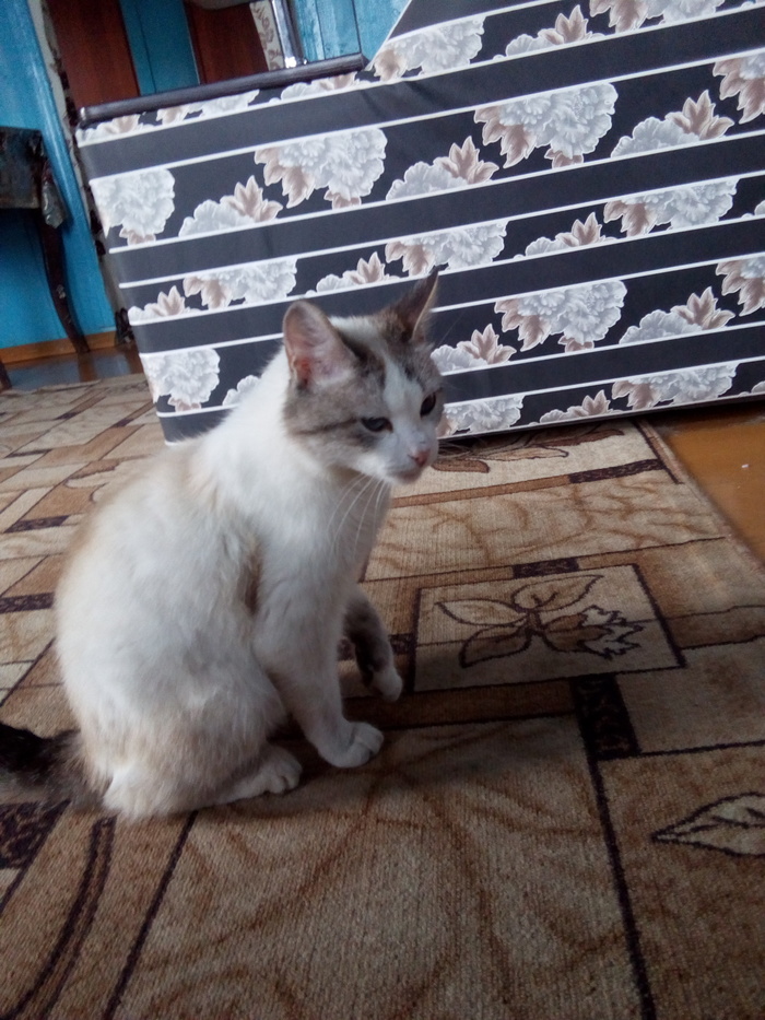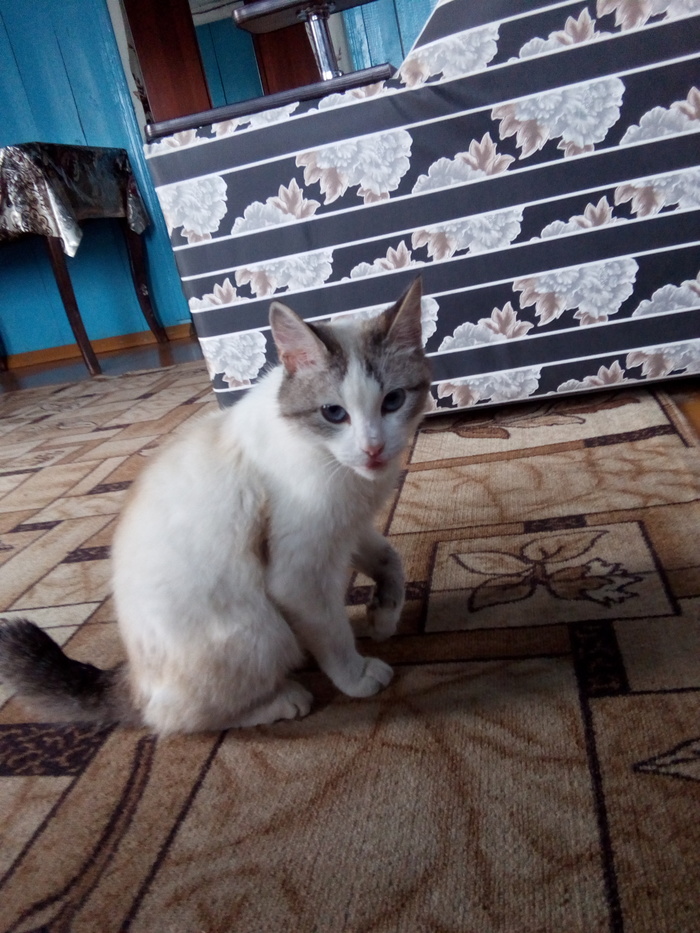 Не хорошие люди подбросили котёнка в огород, заметили случайно. Мы бы оставили его себе, но у нас уже есть кот и второй просто не нужен. Да и наша собака не любит чужих котов, может просто убить. Котёнок нуждается в уходе, похоже сломан хвост и повреждена левая лапка. Слегка пугливая по началу, но привыкнув стала ласковой. И да, это самка.