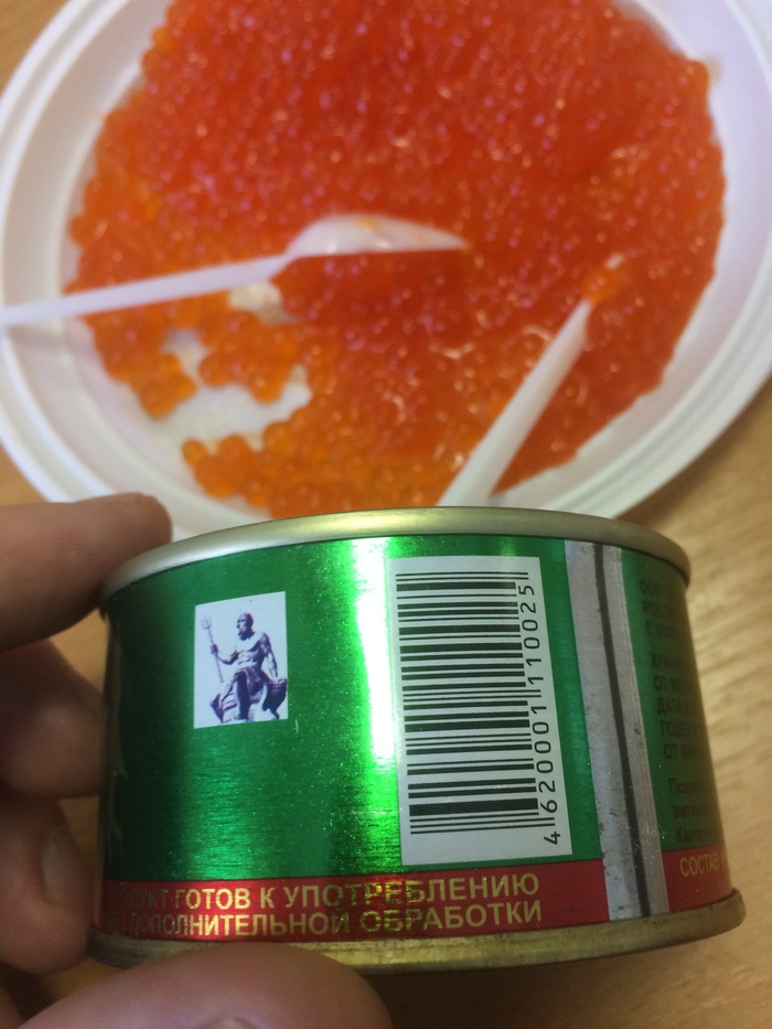 Сегодня в топе прочел пост про икру. Так или иначе, моя работа связана с этой сферой. Сегодня в офис нам прислали вот такой образец икры лососевой ГОСТ. При вскрытии выглядит достойно, на фото тоже получается нормально. Но при детальном осмотре выяснилось, что икра искусственная - запах химии, желатина и каких-то консервов. Икра тянется как пластилин. Встречается пока только в рознице, бабушки ее продают повсеместно у метро, на рынках и тд по 250р. Для информации, примерная цена банки ГОСТ в магазине не менее 500р. Производитель указан сахалинский, сразу скажу, что таким на Сахалине заниматься не будут. Скорее всего, наносят чужую этикетку. Будьте внимательнее, а то новогодние праздники могут пройти не без последствий. Фото прилагаю. З.Ы. закинули икру в кипяток, добавил новые фотки. Закинул икру в стакан, налил кипятка, получилась фанта )) Вода окрасилась. Потом все это дело на тарелку выложил вместе с кипятком, смотрите что получилось