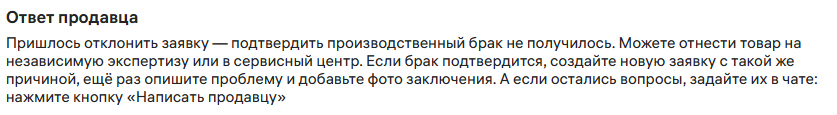 После недели раздумий и переписки с продавцок который предлагал использовать очистку головки мне прилетает отказ в возврате.