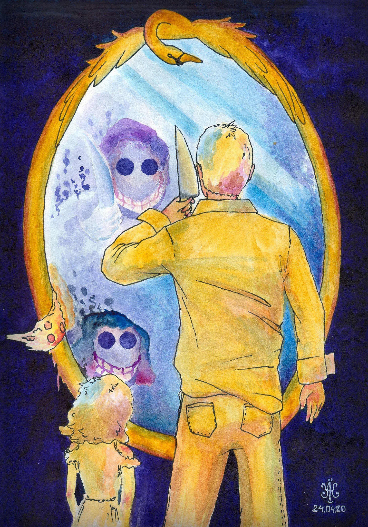 "Это кошмар, который приснился мне пару лет назад, но я помню его до сих пор.Кухня в хрущевке (или скорее ее подобие), освещенная тусклой желтой лампочкой. В комнате два стола. За одним - женщина и двое мужчин среднего возраста пьют пиво и что-то обсуждают. За другим - я и какая-то девочка лет восьми, мы едим пиццу. Девочка смотрит на меня и говорит: ""У тебя что-то на лице"". Я встаю и подхожу к зеркалу, висящему на стене. Я не различаю отражения (как и чужих лиц), но мне кажется, что с мои лицом что-то не так, оно какое-то неправильное, уродливое даже. Я беру со стола нож для пиццы и начинаю срезать с себя лицо. По контуру, как в известном фильме. Закончив, я кладу его в коробку от пиццы. Потом я иду к шкафу и достаю маленькую коробку, в которой лежит другое лицо. Я пытаюсь надеть его на себя, но ничего не выходит. Думаю вернуть старое лицо, но понимаю, что его внутренняя часть уже испачкана.