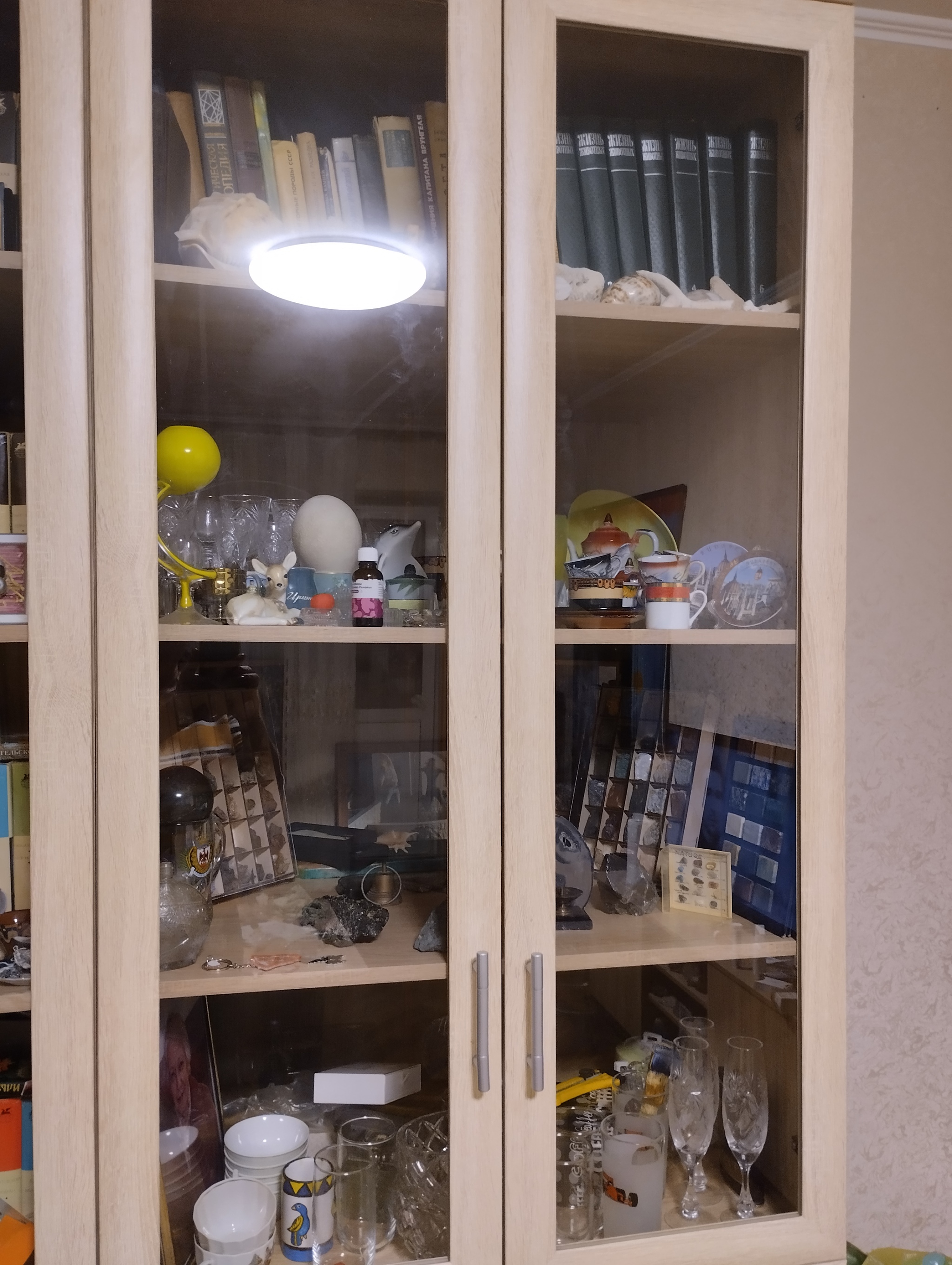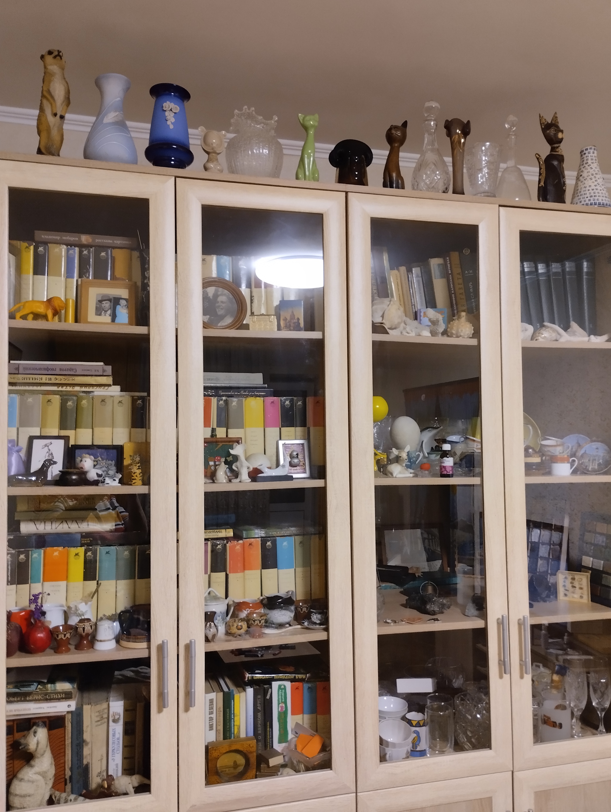 Конечно, шкафы оформлены существом с "воображением дятла"©. Сюда притащены почти все книги, дорогие мне как память. Поделки дочери и внучки, разные безделушки, с которыми связаны небольшие семейные истории.