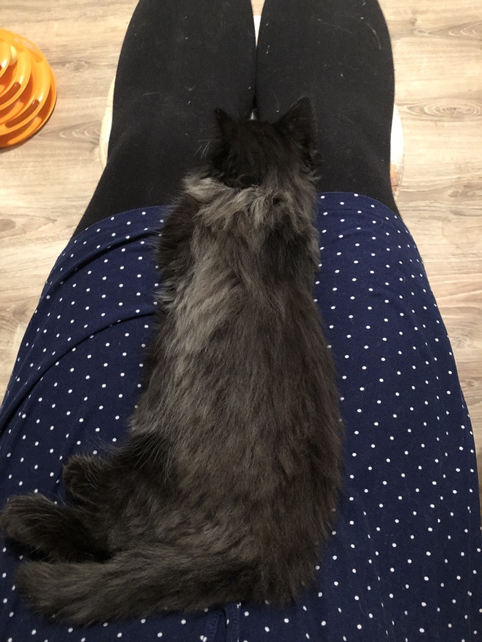 А потом наступил ноябрь и мой очередной отпуск. Котиков в моем организме все еще не хватало и идея черной пушистой девочки все еще не отпускала. Мы начали поиски. Уже не породистого, но так чтоб екнуло сердечко. И оно екнуло на каком-то объявлении на авито я увидела комок окраса черный дым. Снова пацан. Но я смотрела на эти фотки сделанные на тапок и понимала, это мое. Связалась с продавцом и мы поехали за вторым котом.