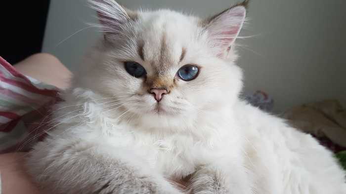 Единственный хайленд с огромными синими глазищами и той самой британской ухмылочкой. К тому моменту мы уже присмотрели одну девочку. Тоже хайленда, у другого заводчика. Биколорную и желтоглазую. Я все еще хотела куна(да и сейчас хочу и заведу, но чуть позже). Но выбирали мы между этими двумя. Иронично что ехали мы искать черную пушистую девочку. А в итоге... В итоге мы забрали того мальчишку с синими глазами. Из трех пунктов совпал один. Он был пушист. Там же мы купили кошачье приданное и долго смеялись над тем, что первое, что сделал наш будущий кот это попытался сжевать свой ветпаспорт.