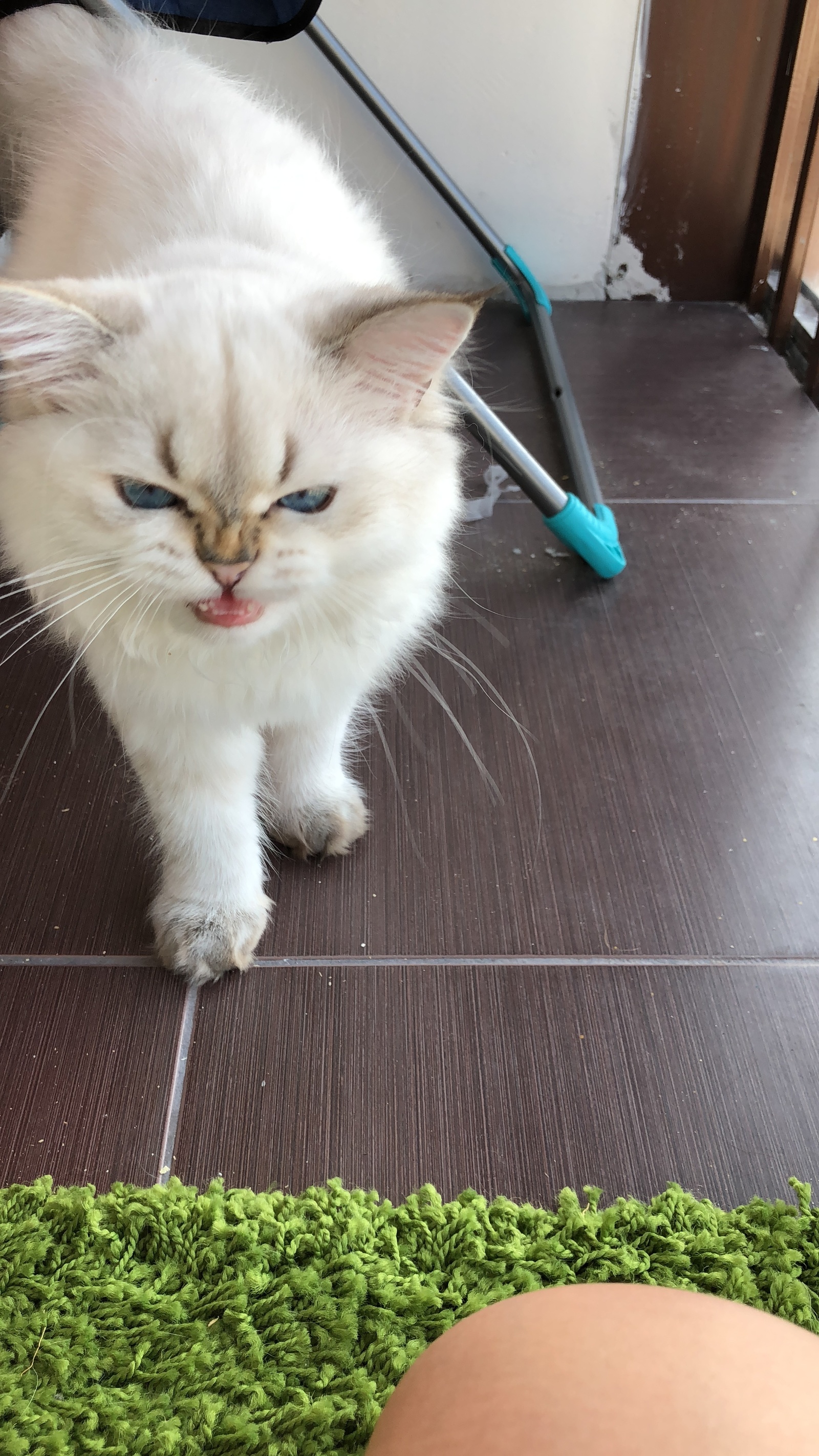 Мы ехали домой и наш зверъ пел песни. Голосок надо сказать для почти четырех месячного у него весьма зычный. Да и сейчас, никто не верит что он может мявкать так. Документы мы забирать на него не стали(сглупили, но а смысл, по выставкам не таскаем, вязать не вяжем, он уже кастрат).