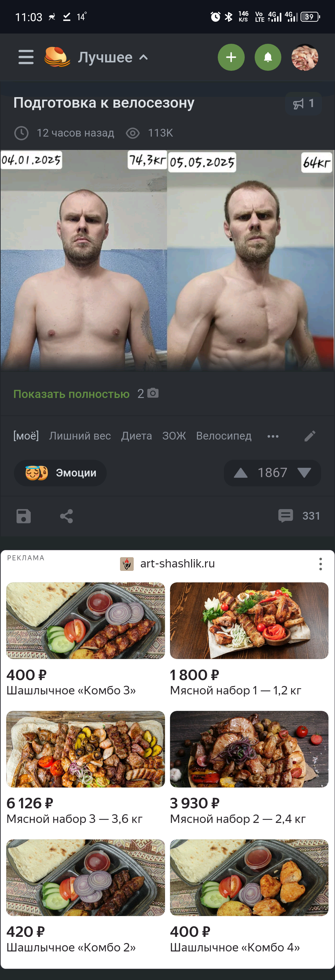 Велосипед всё это время висел на стене и напоминал, что скоро весна и рано или поздно мне придётся взять себя в руки. И как и многие я решил это сделать после нового года, хотя и на новогодних я уже старался следить за количеством пищи, но без фанатизма. В итоге я сделал первое фото, встал на весы и приготовился к долгому издевательству над собой. Не было такого, что я отказывался от каких то продуктов, считаю такой подход глупым. Я ел всё, но старался уложиться в норму по калориям. Изначально по формулам мне выдало норму для поддержки в 2400ккал и рекомендацию в 2200ккал, но я же мужик, значит надо сразу 1800ккал и ни грамма больше. Стряхнул пыль с турника, достал из закромов ролик для пресса и три раза в неделю не менее часа я пытался что-то делать. Результаты росли, был куплен пояс для отягощений, подтягивался я уже с дополнительным весом, часть упражнений выполнялась с резиной для фитнеса, а рацион пополнялся дополнительным белком и витаминами. Каждый месяц я добавлял по 200ккал и увеличивал нагрузки, а в конце марта вместе с хорошей погодой вернулся и велосипед. Чувствую, что пока всё равно ещё слаб, что недостаточно подготовился, но самочувствие уже значительно лучше, что подтвердили и анализы во время последней диспансеризации. Даже кардиолог отметил, что ритм стал более ровным, а пульс в покое заметно снизился, теперь можно посещать его реже и это радует. Ну и внешне всё таки стало поприятнее. Нет предела совершенству, так что я пожалуй пока не буду останавливаться.