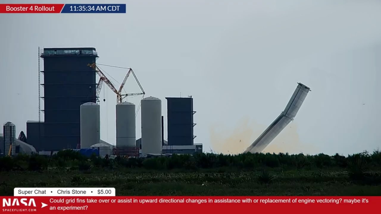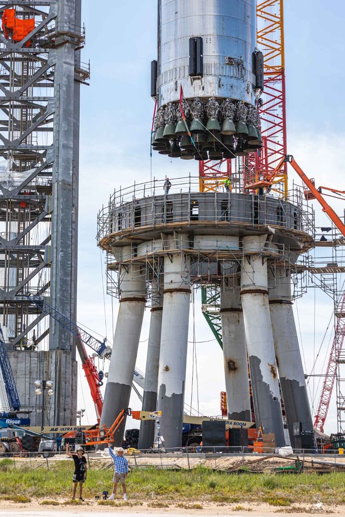 Сегодня утром прототип ТПК (Транспортного Пилотируемого Корабля) "Starship" S20 будет установлен на первую ступень Super Heavy B4.