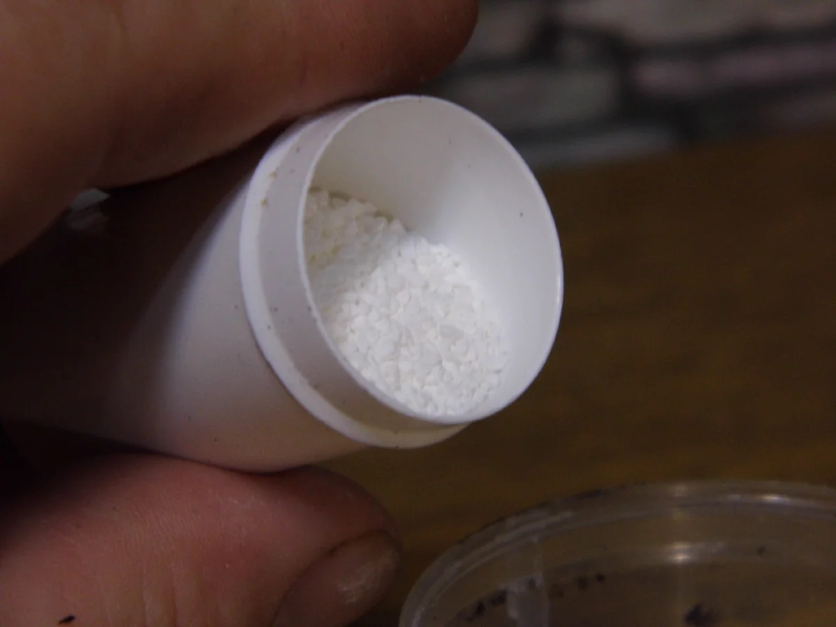 Порошок следует растворить, готовые жидкости применяем сразу. У меня порошок, потому что жидкость имеет ограниченный срок годности, используется обычно на больших объёмах. Тем временем берём специнструмент (отжатый у девочек). Зачищаем места приклейки.