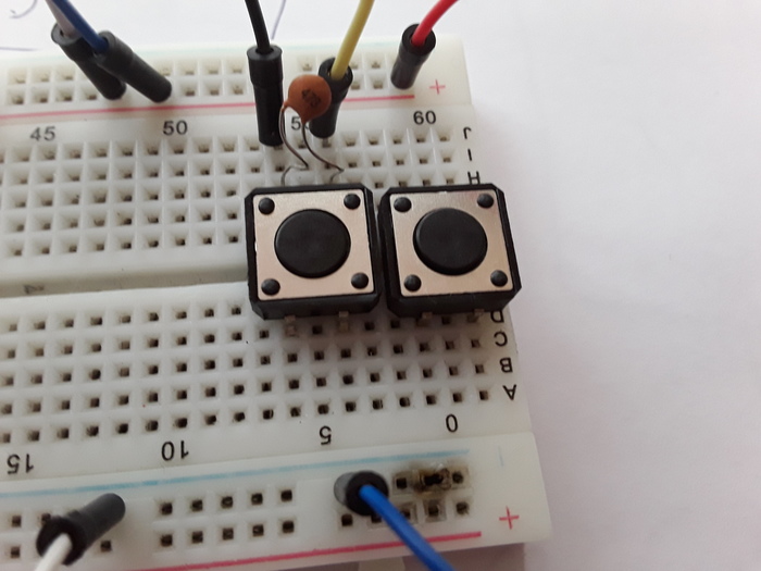 Питание микросхемы составляет от 3 до 15 Вольт. Я подключил питание 5 вольт. При этом резисторы можно и не использовать. Подключаем плюс питания через кнопку к первой ножке микросхемы.