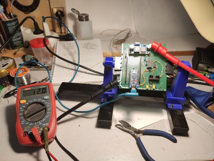 Взял остатки старых своих проектов, которые вы даже когда-то видели в моей статье "С чего начинается устройство". Там как раз есть подходящий корпус, DIN-разъём и макетная плата.