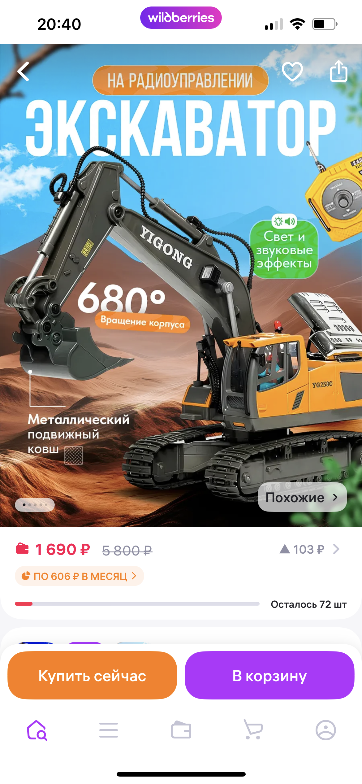 В общем и целом, на Вб можно заказать всего-то за 3641 рубль грязный юзанный неработающий экскаватор рандомной марки в несколько раз дешевле уплаченной цены с отсутствующими комплектующими. Завидно, да, что мог быть ваш, но достался только мне?