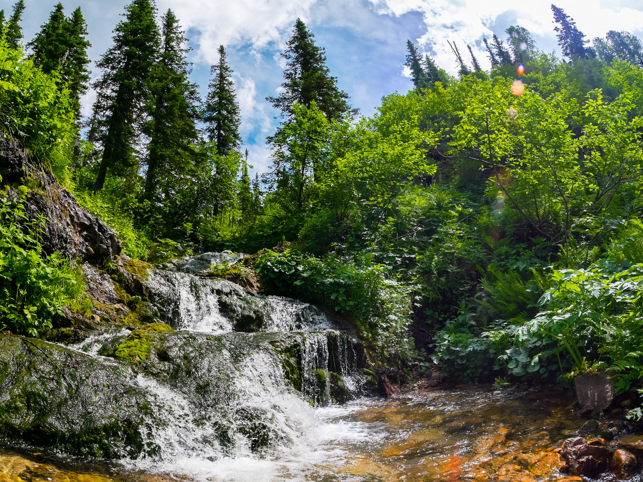 Поднебесные Зубья — живописный туристический район, расположенный в Кузнецком Алатау, на стыке Кемеровской области и Хакасии, недалеко от железнодорожной станции Лужба. Ближайший населённый пункт — город Междуреченск, находящийся примерно в 60 км к западу. Этот обширный регион отличается разнообразием ландшафтов: здесь можно увидеть горные гряды и массивы, более сотни перевалов, многочисленные ручьи, родники, реки и озёра, а также водопады, карстовые формы рельефа, альпийские луга и тундровые зоны.