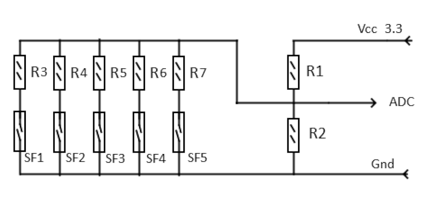 5 i.skuff Лига Радиолюбителей Хобби Подобрать резисторы 2 дня назад Помогите с решением, нужно подобрать резисторы в такую схему. Герконы SF1..SF5 могут замыкаться по одному или попарно (SF1+SF2, SF2+SF3, SF3+SF4, SF4+SF5), но не могут в других комбинациях (больше 2 и через одного) ADC 8 бит. Электроника Радиолюбители Arduino Пайка Схемотехника Самоделки Ещё 0
