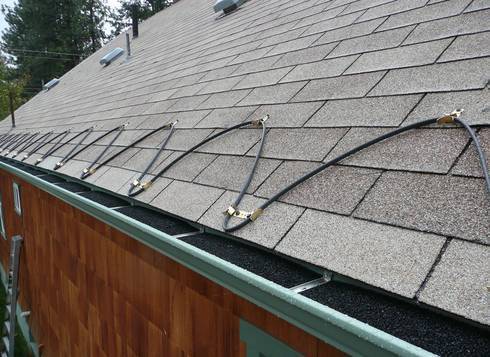 Добрый день. Давно меня просят отчитаться как, как там дела с экспериментом по подогреву солнечных панелей зимой, да все как то руки не доходили написать. Итак отчет готов. Более свежее фото не сделал, так как крыша еще в снегу, а металлопрофиль под снегом чертовски скользкий, я один раз попробовал и решил больше не рисковать, чтобы не пополнить список свалившихся с крыши. И так вот на эти панели был приклеен инфракрасный нагревательный кабель из углеродного волокна. Панели специально на зиму оставил «под летним» углом наклона (у меня это в районе 45 градусов) чтобы проверить будет ли кабель прогревать панель зимой и как себя поведет снег при нагреве панели. Кабель под панели был уложен и вертикально и горизонтально и зигзагом, в общем посмотреть, как же все таки лучше будет. Было уложено 15 метров кабеля на две панели по 250Вт.