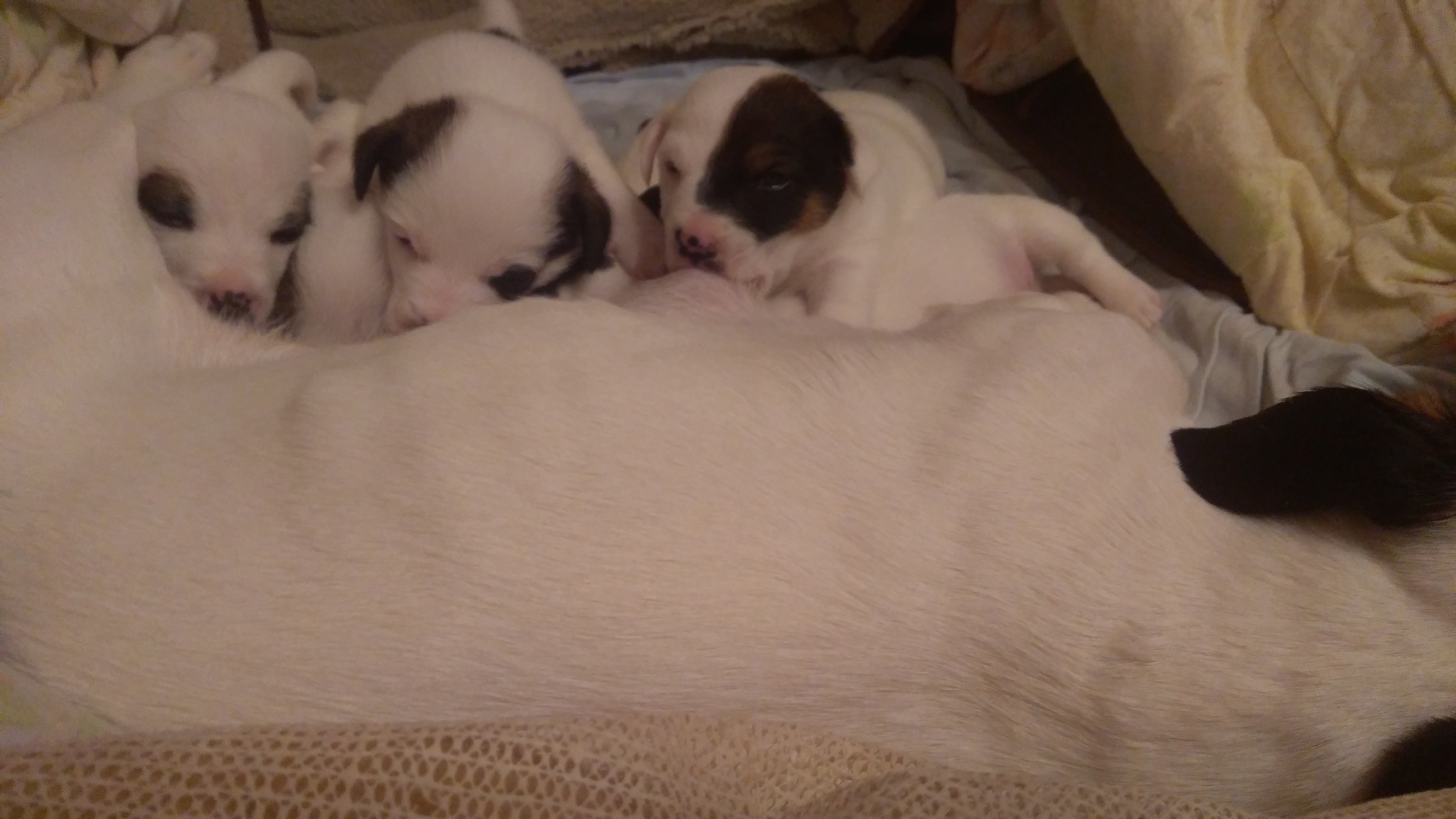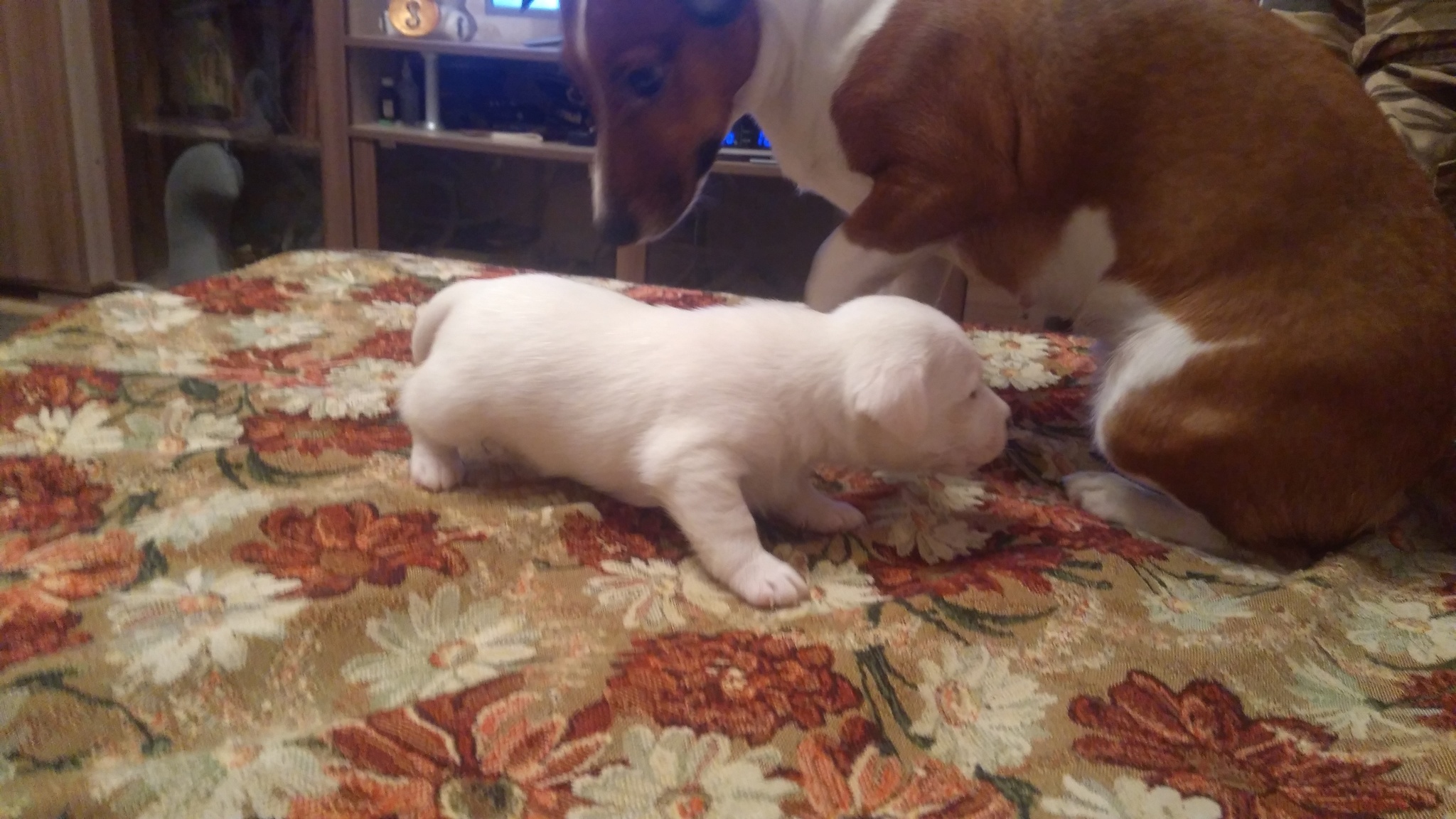Собаки продолжение Щенки растут. Ихамать в норме). Добрейшая и послушная псина оказалась. При этом заботится о щенках и защищает.