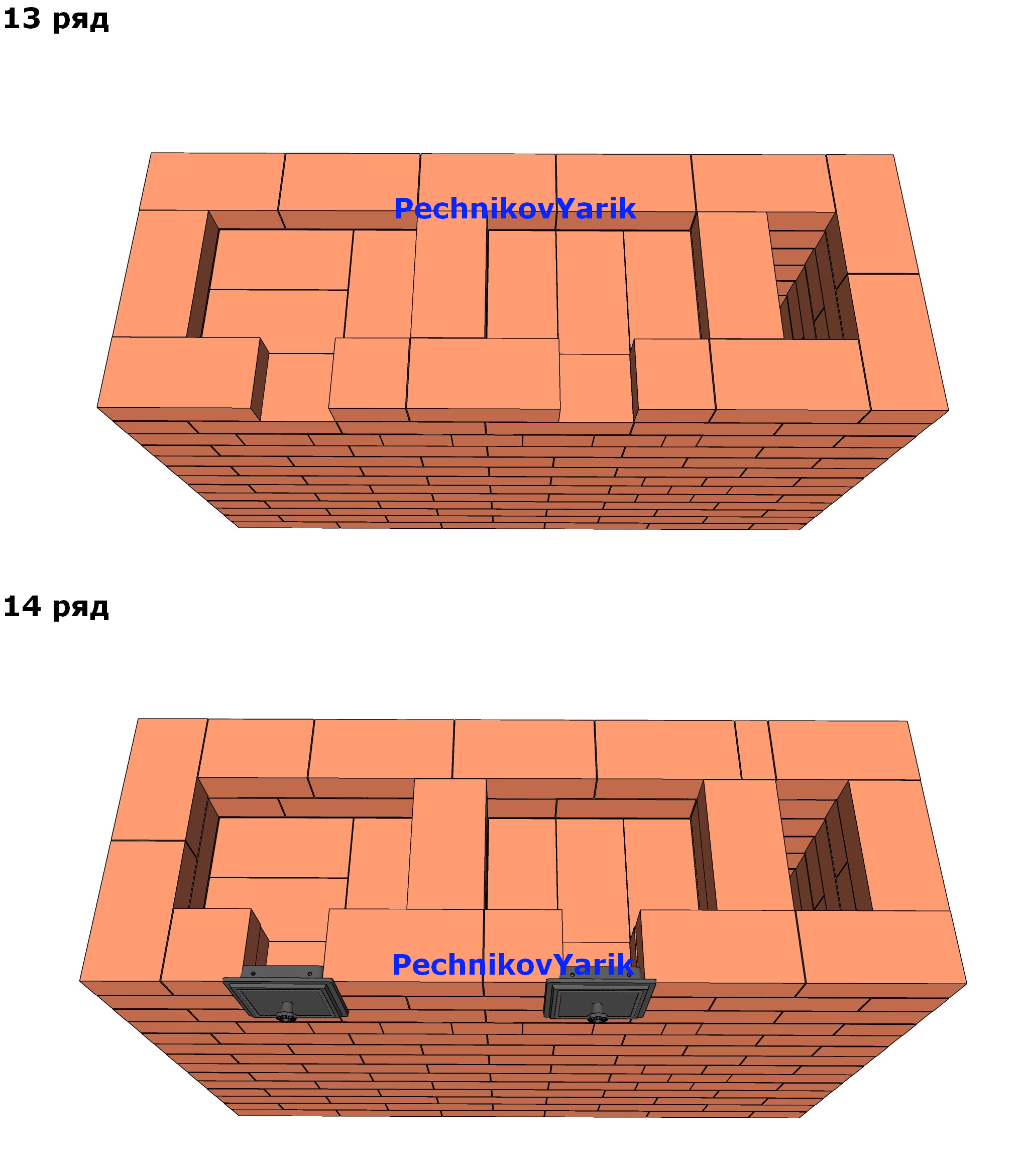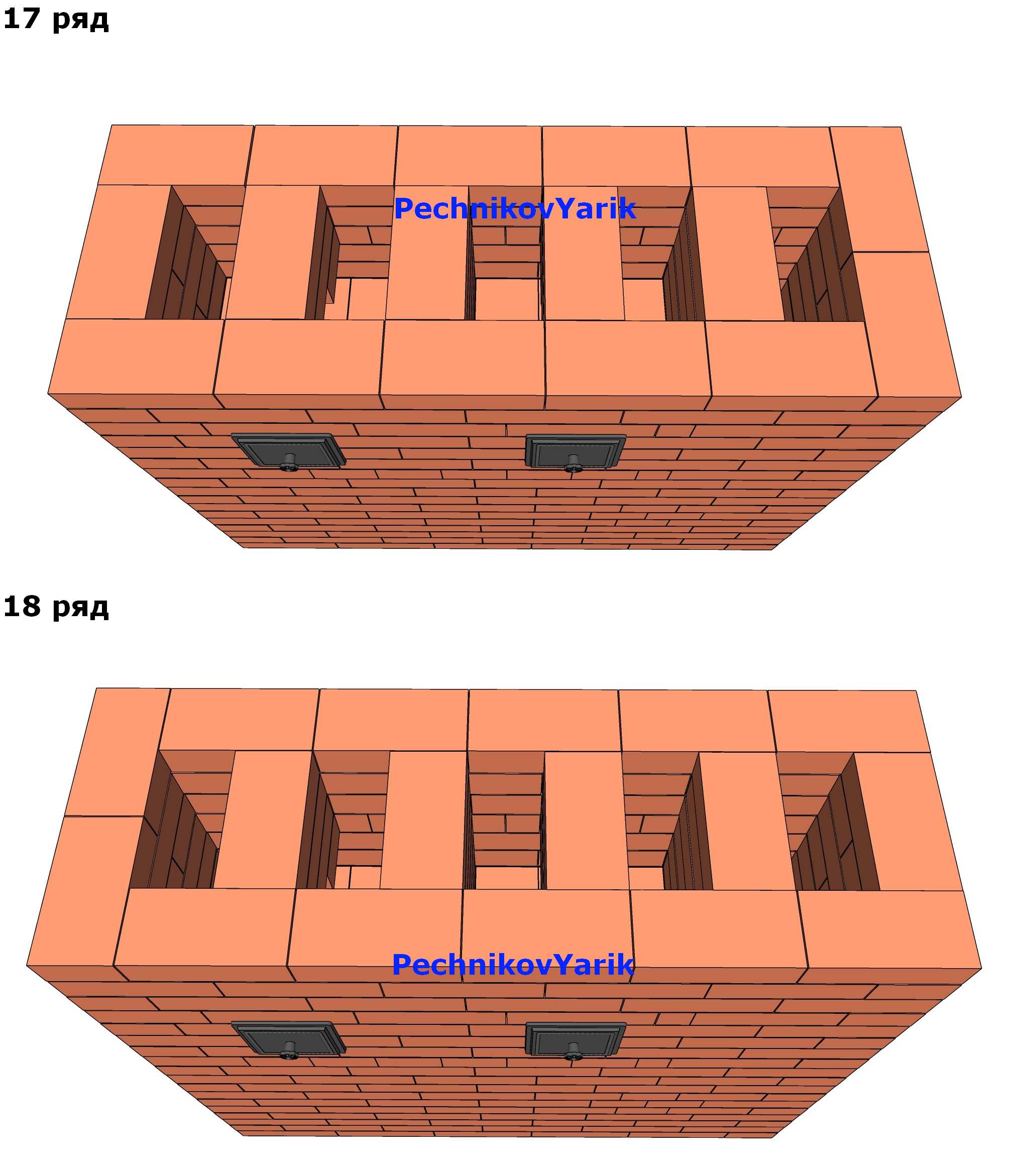 17-18 ряды, если существует необходимость регулировки печи по высоте, то либо убираем парно эти ряды, либо прибавляем парно.