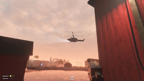 В одном из режимов за игроком охотится вертолёт, который стреляет из пулемета и тоже разрушает локацию. От него можно спрятаться.