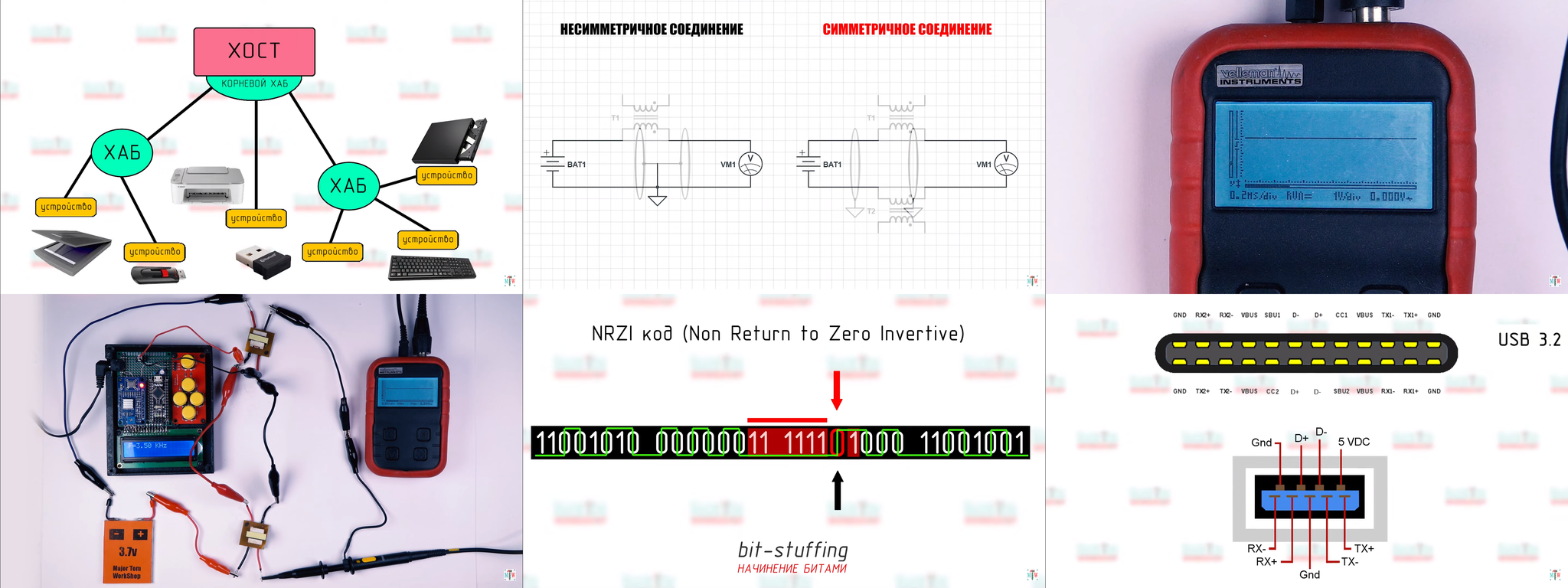 Автор канала рассказывает как на физическом и логических уровнях работает USB шина и показывает как появляется синфазная помеха (наводка) на соединительном кабеле.