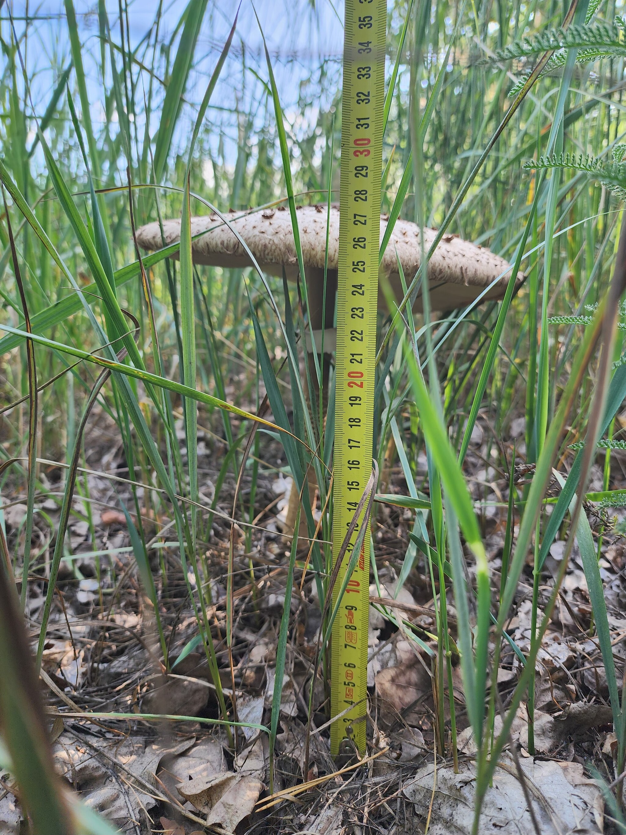 С рулеткой на работу не хожу, это я уже вечером её взял и специально ещё раз сходил, с целью измерить высоту и диаметр грибов.