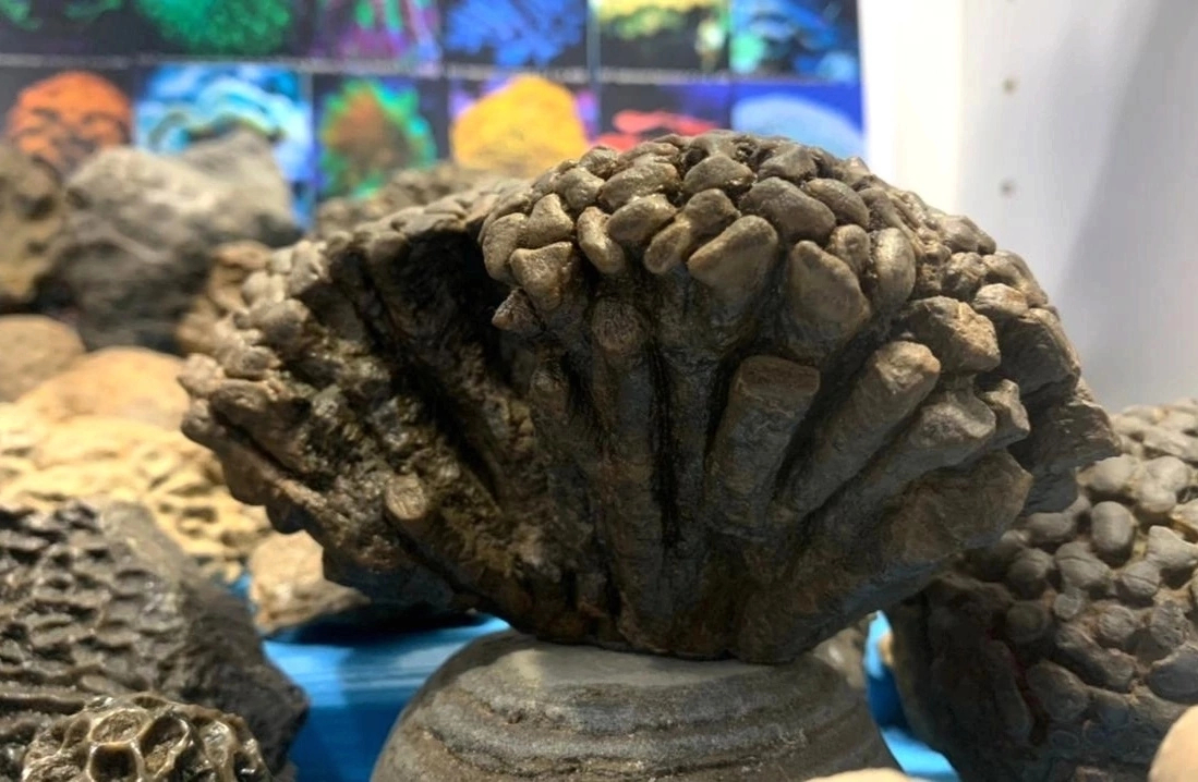 Похоже на окаменелый, немного окатанный коралл. На прикреплённых фото очищенная окаменелость с ЮБК и современный аналог.