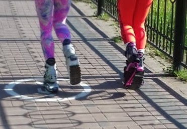 Мама на прогулке встретила девушек в странной обуви. Они бегали.