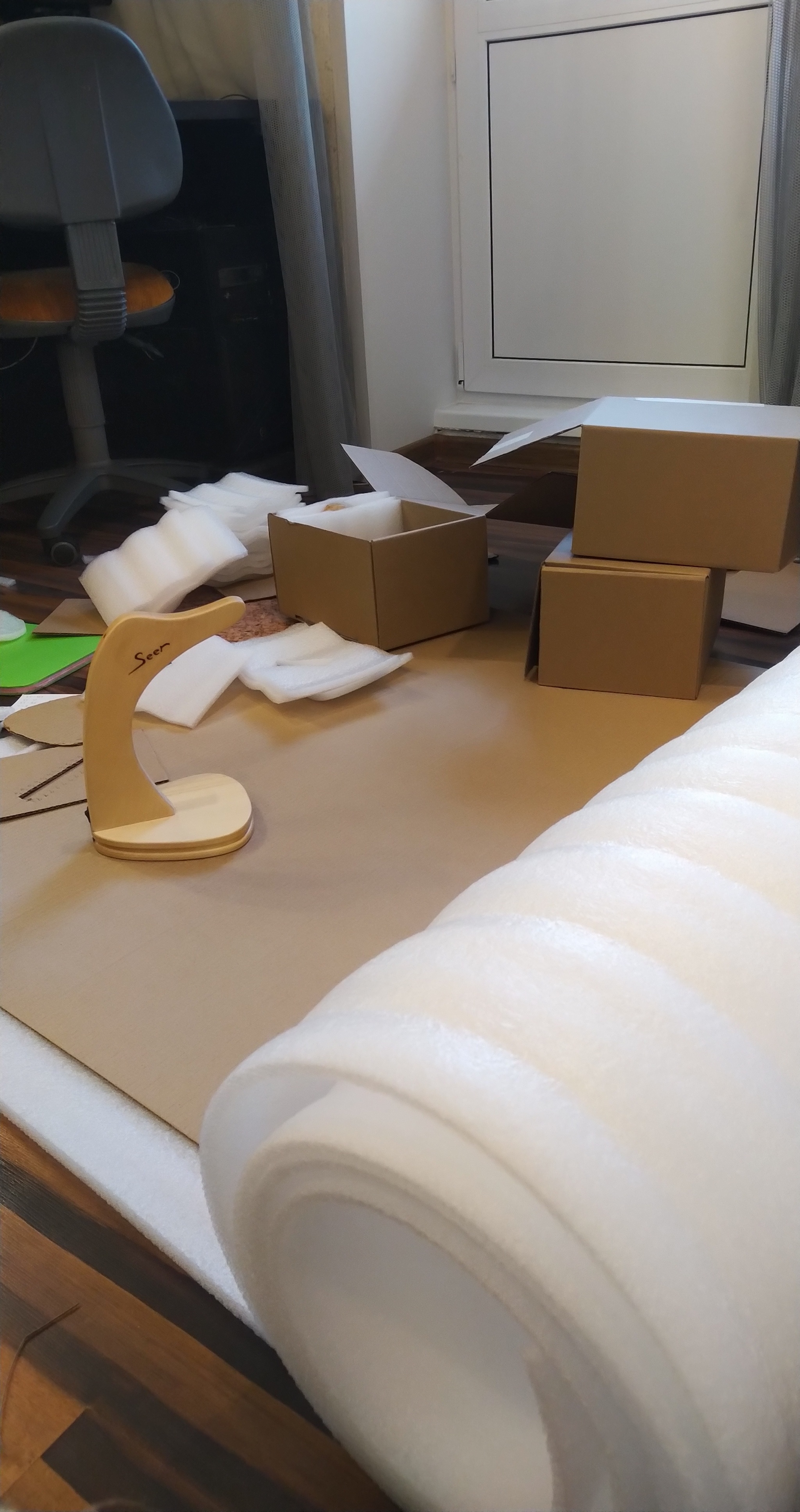За два месяца изготовил десять полностью рабочих и такое-же количество комплектующих, на сборку которых не нужна мастерская, продолжить я смог бы и в городе. Был курьёз с лакировкой, вернее последствия не соблюдения техники безопасности. Промывая растворителем аэрограф, зачем-то решил глянуть в ёмкость для лакокрасок, нажал на спусковой рычаг, ну и как итог растворитель в лицо и глаз, два дня не мог работать, ночь не спал, будто наждачку под веки положили. Так быстро я никогда не бегал, как в тот вечер, к раковине для промывки глаза. Локдаун закончился, мой чирик подставкок смотрел на меня и радовал. А там и снег растаял, лето на носу. Разместил в Etsy, Ярмарке мастеров, и ещё парочке магазинах. Раздобыл картона, наделал коробок для упаковки. И сидел ждал. Вообще-то не сидел, работал на работе, я айтишник по образованию, стаж уже наверно к восемнадцати годам доходит. А это вот всё выше описанное моё хобби. Не могу просто сидеть и ничего не делать. Последние полтора года живу без дивана и телевизора, понимаю, что отсутствие оных никак не напрягает, они мне просто не нужны.