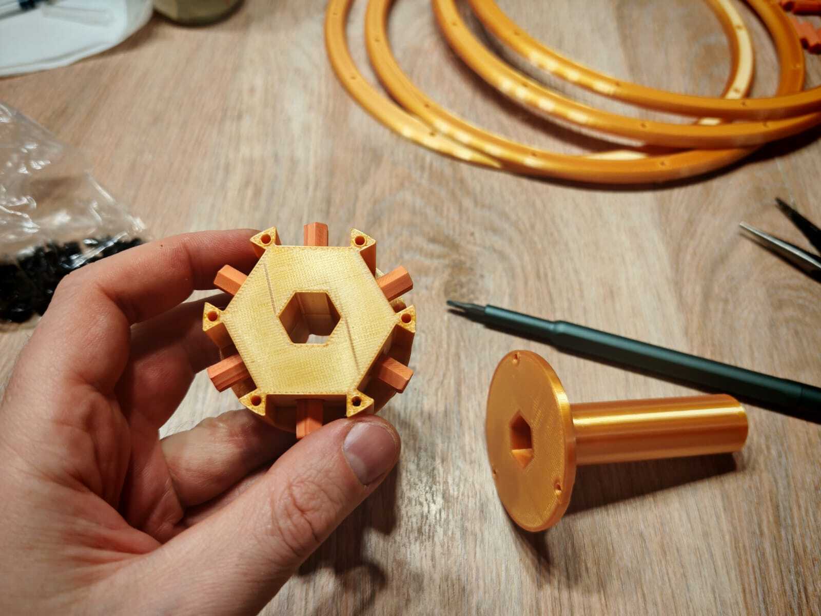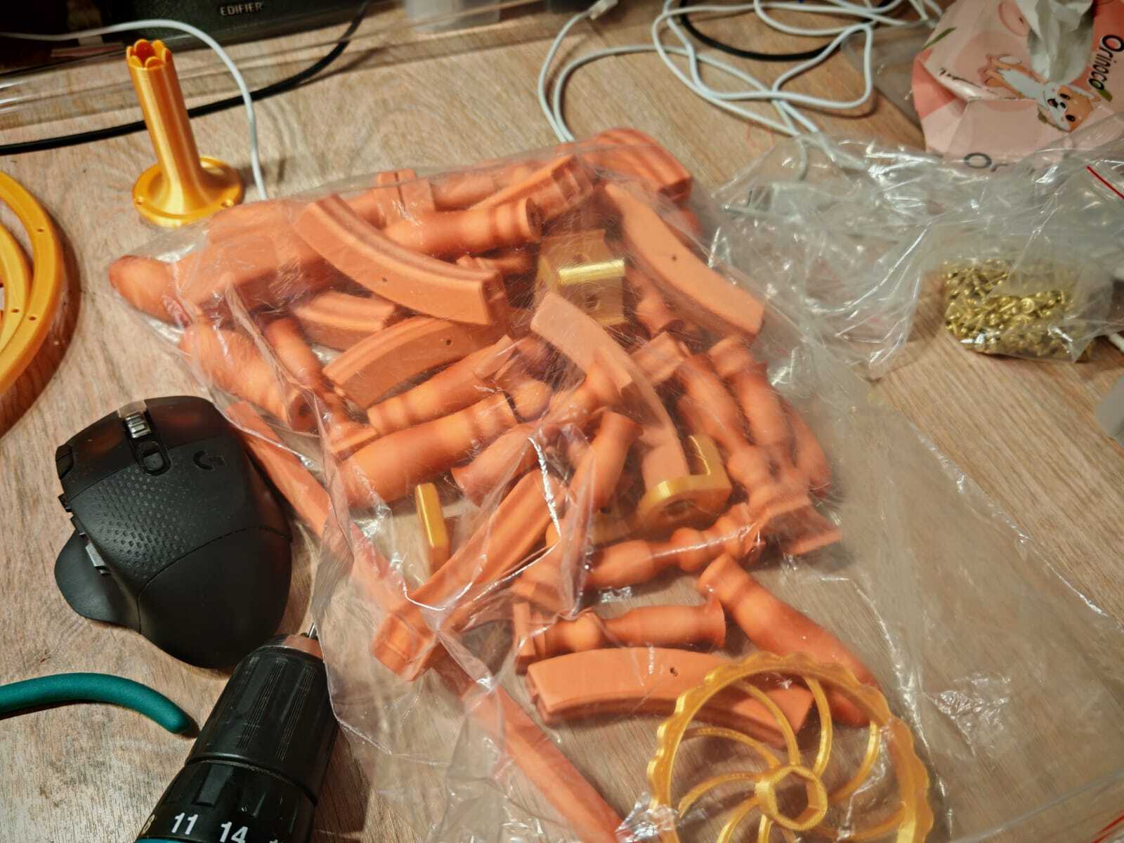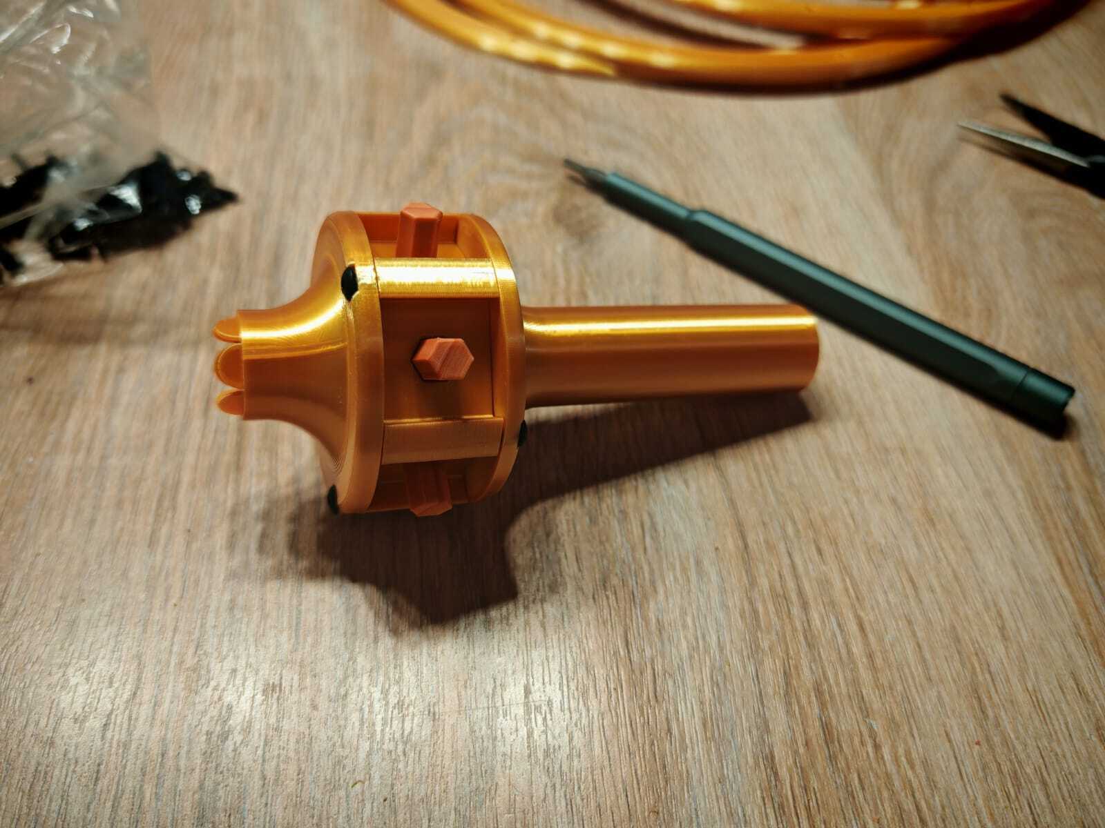 Материалы: коричневый - матовый PLA Eryone danxia, прозрачный - PETG, золотой PLA silk (на фото eSun, похожий красивый цвет у Sunlu brass), двигатель (редуктор) N20, светодиодная лента на 5 вольт, два раздельных батарейных отсека по 3 пальчиковые батарейки. Склеивал при помощи ДХМ шприцом (некоторые соединения на склейке).