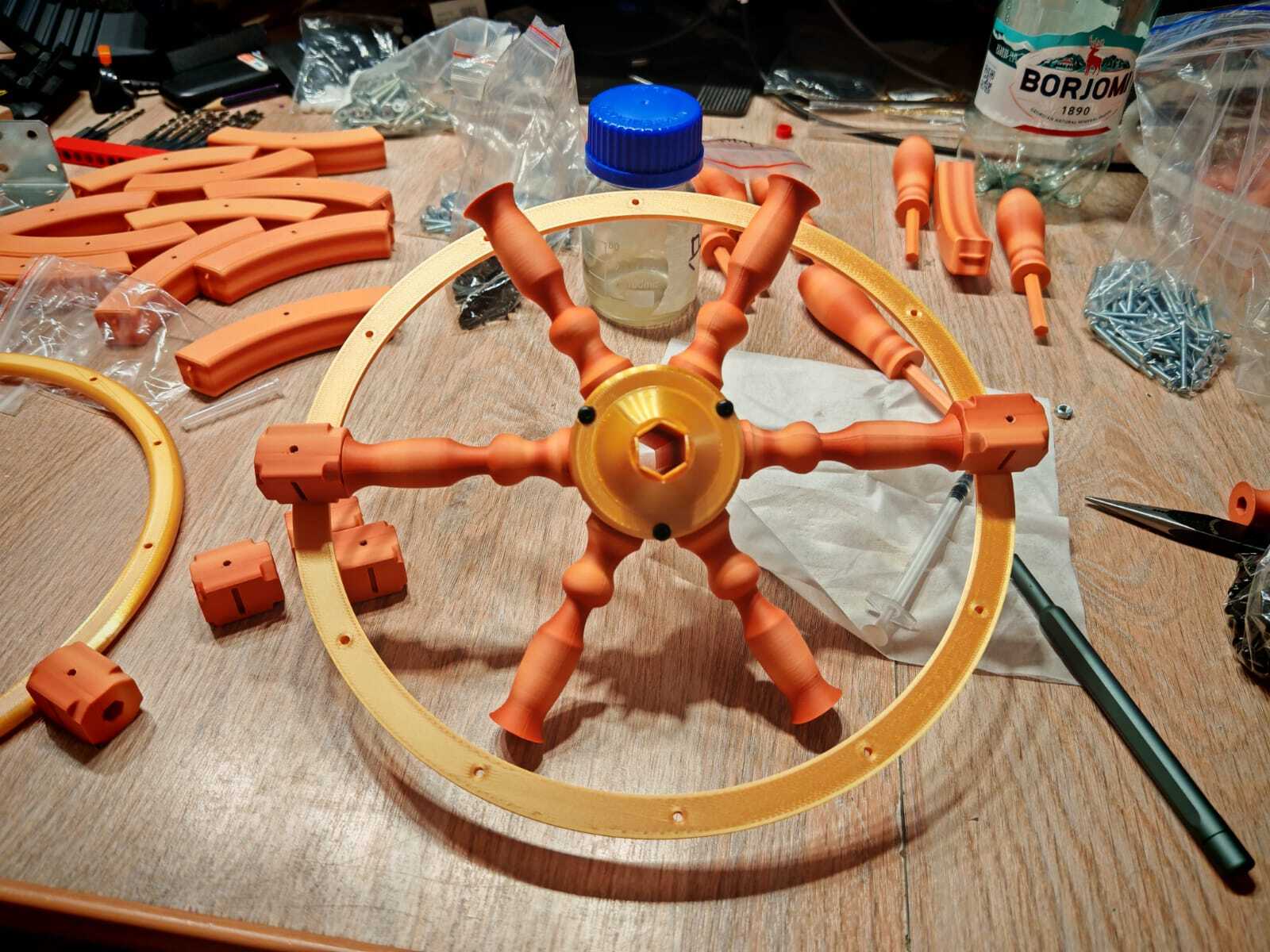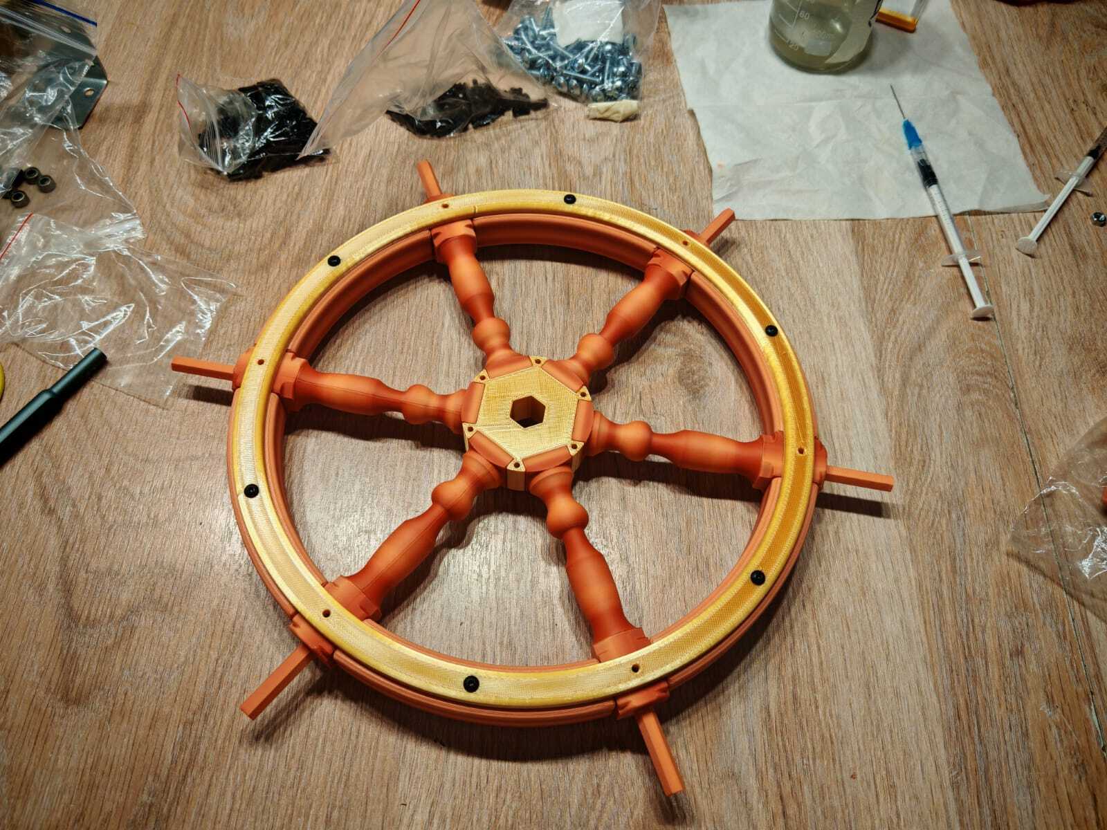 Это вторая версия штурвала - сделал сам штурвал полностью разборным и с исторически достоверной конструкцией (ну процентов на 90 :)) )