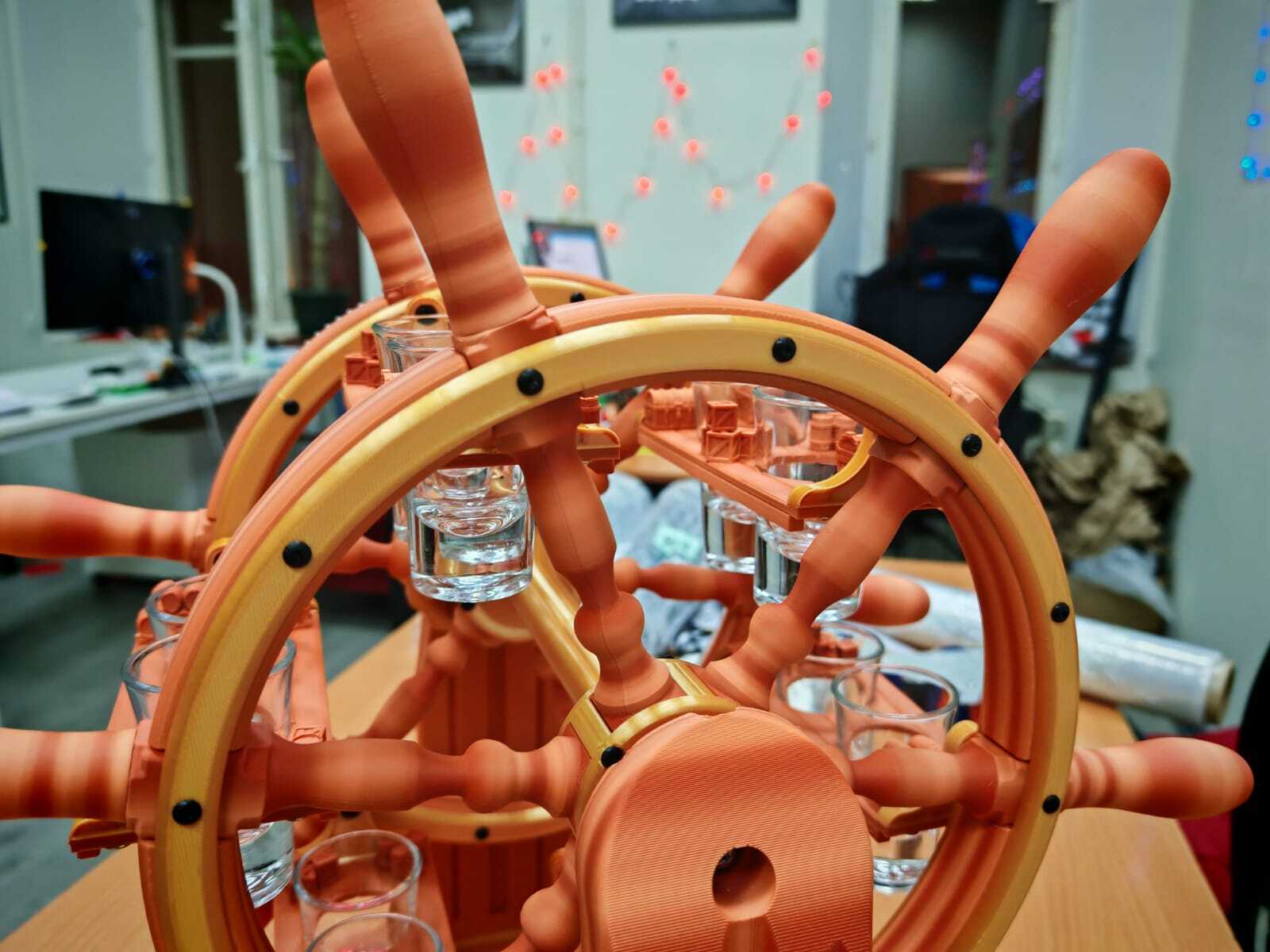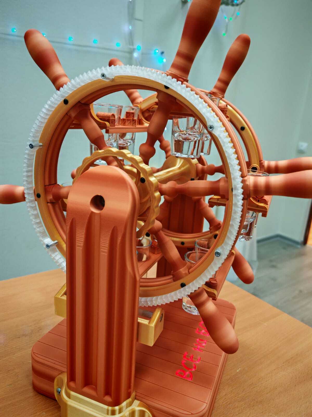 Шестеренки в уже готовой модели можно, открутив несколько винтиков, заменить на модуль фиксации штурвала в нескольких положениях (чтобы можно было крутить рукой, и чтобы штурвал фиксировался не давая полным стопкам/шотам перевешивать вниз отправляя в верх пустые)
