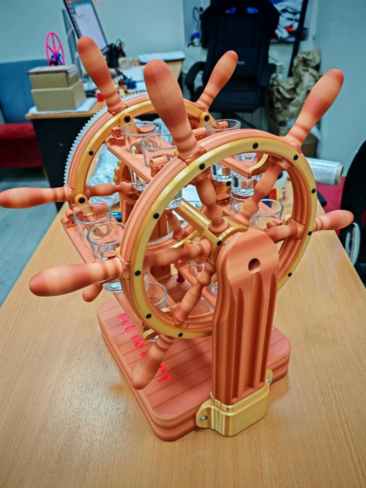 Конструкция не монолитная, а разборная (винты М3 и М4), если пьяный гость сломает отдельную деталь - можно распечатать и заменить.