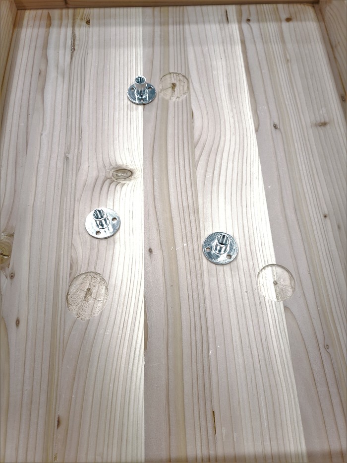 Подвешивать я их буду на ножки от мебели. Это достаточно качественные ножки, написано что им 300кг каждой нипочём, и я не думаю что им будет втроём тяжело держать ~100кг.