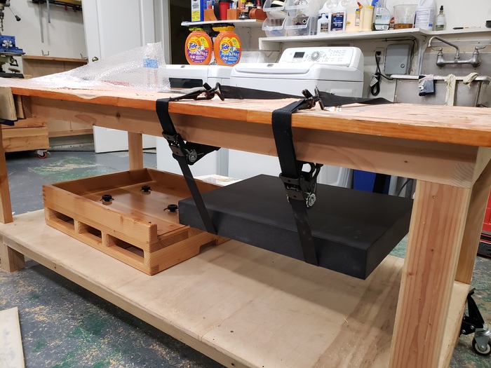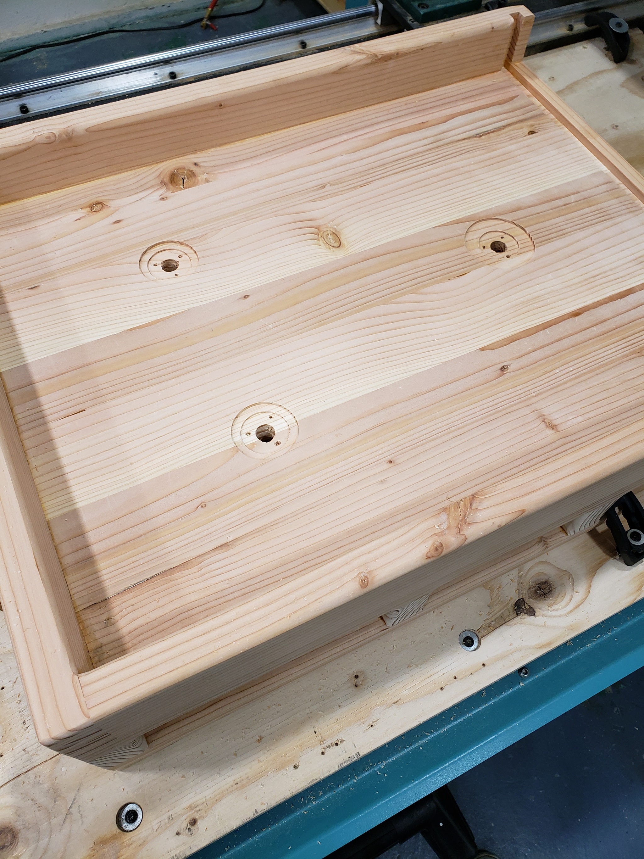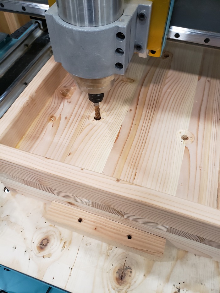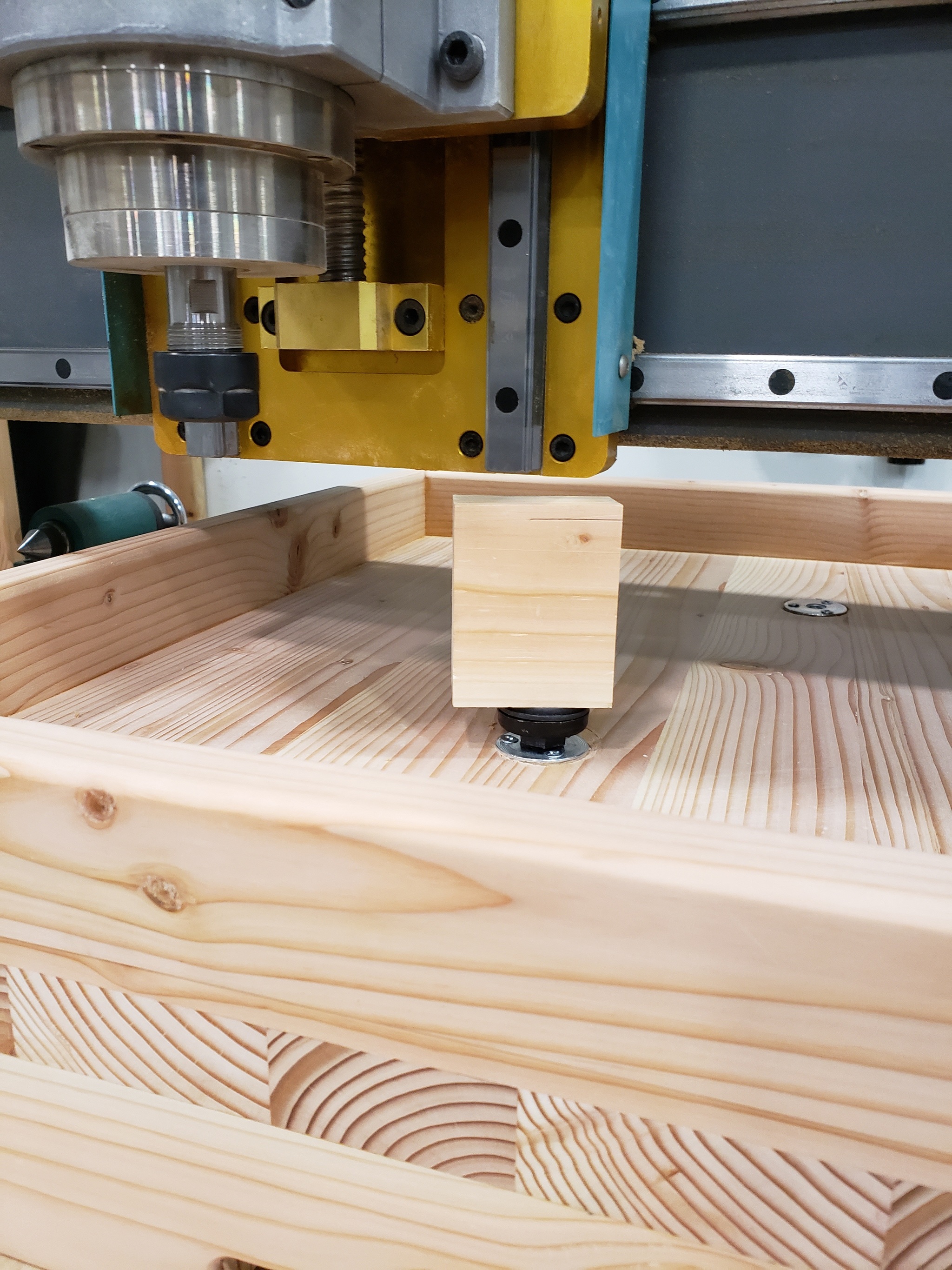 Нахожу брусок высотой чуть больше чем 3 дюйма, он нужен чтобы подобрать высоту бортика крышки так чтобы она лежала на бортике подставки, а не на плите. Кроме того я хотел бы чтобы конструкция влезала под гантри чпу чтобы я мог при желании пощупать щупом или индикатором объект лежащий на плите.