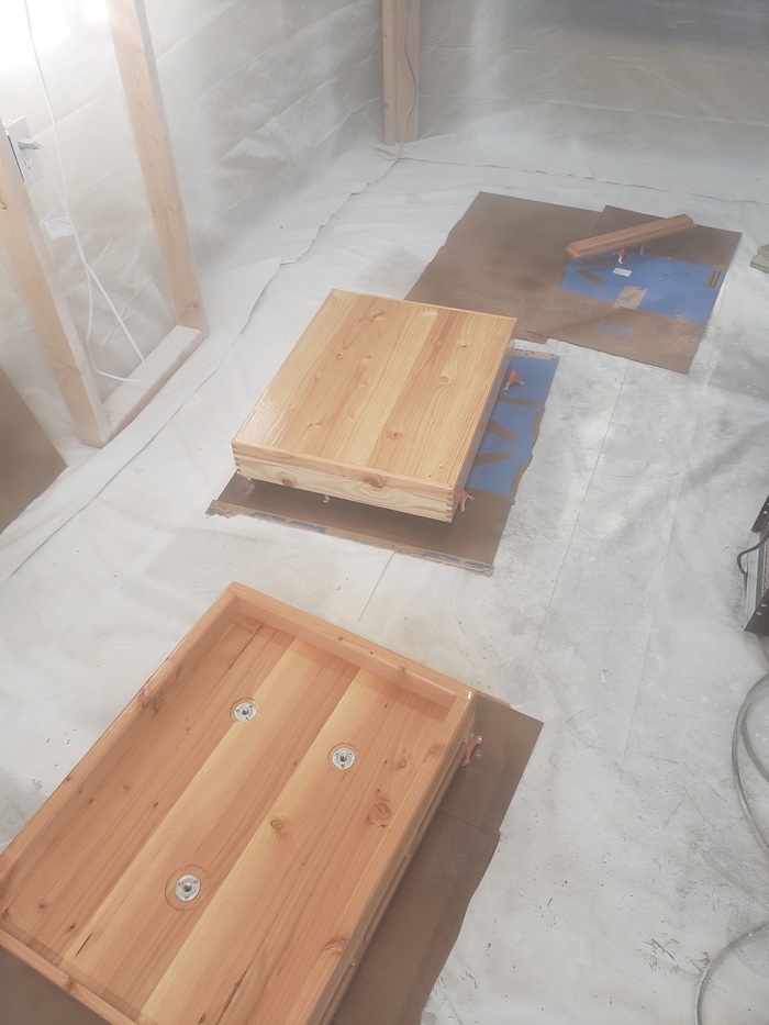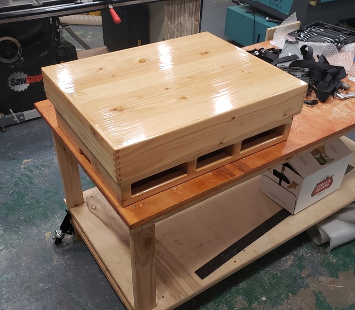 Итак я остановился на том что сама подставка готова, как крышку делал описывать не буду ибо процесс примерно такой-же, единственное достаточно много усилий потратил чтобы рассчитать так чтобы крышка лежала не на плите а на бортике - из деревянной крышки выделяется смола, да и полиуретан может отслоиться, не хочу потом это счищать с плиты.