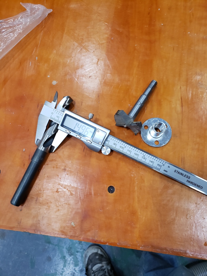 Я копаюсь в свёрлах и нахожу 15мм для шпильки и нахожу 50мм китайское подобие сверла фостнера. "Идеально подходит чтобы утопить шляпку от гайки, там тоже 50мм" - думаю я. Ну, знаете, когда в руках молоток всё становится похожим на гвоздь.