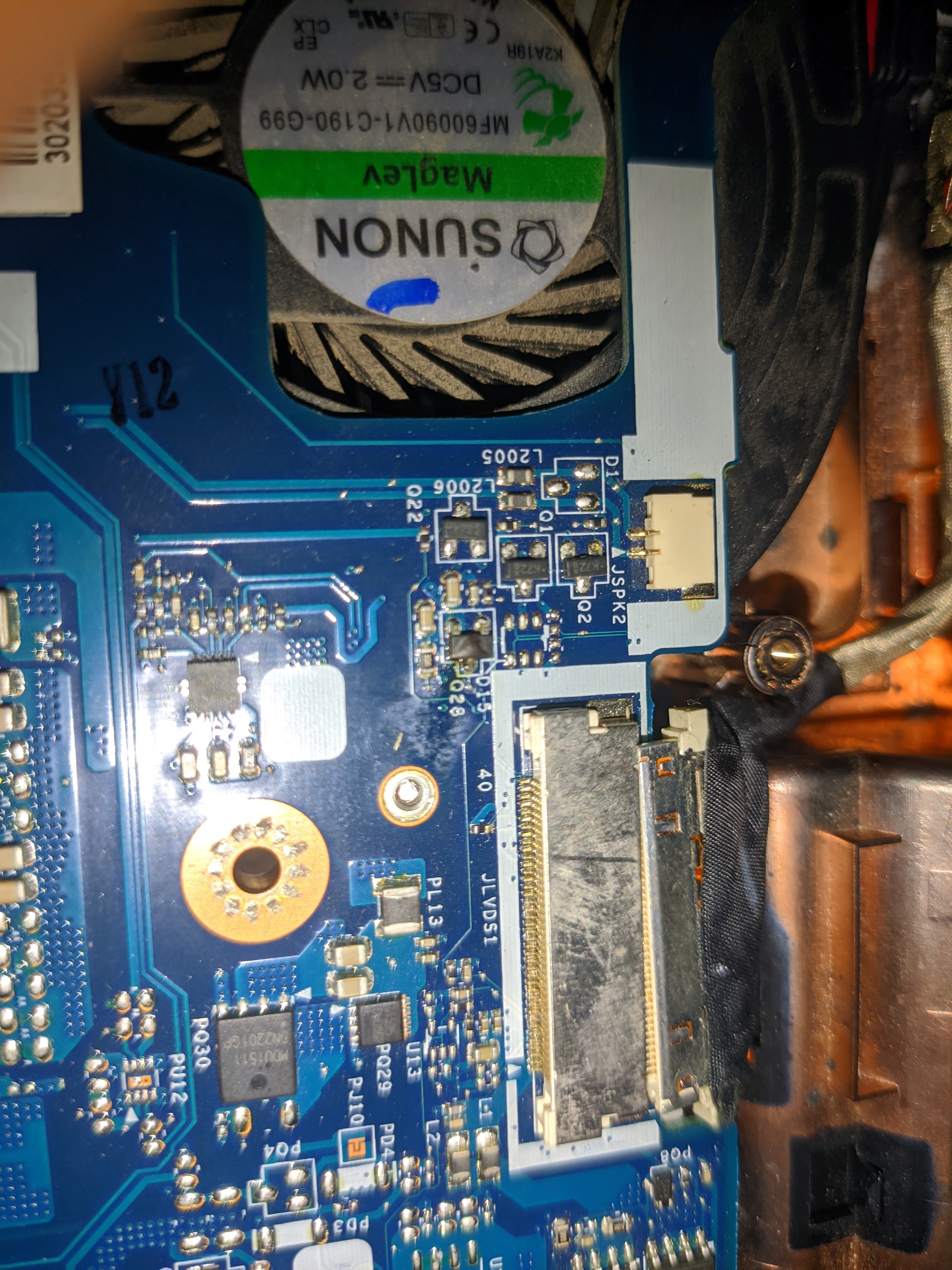 Близлежащие разглядеть можно по маркировке,но этот на плате Q28 вздулся и разглядеть невозможно. Может у кого есть предположения или схема на мать,поделитесь пожалуйста