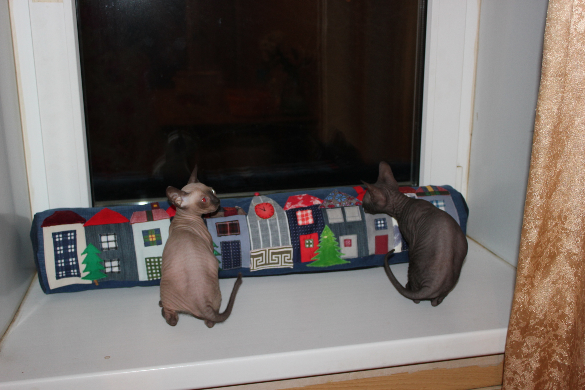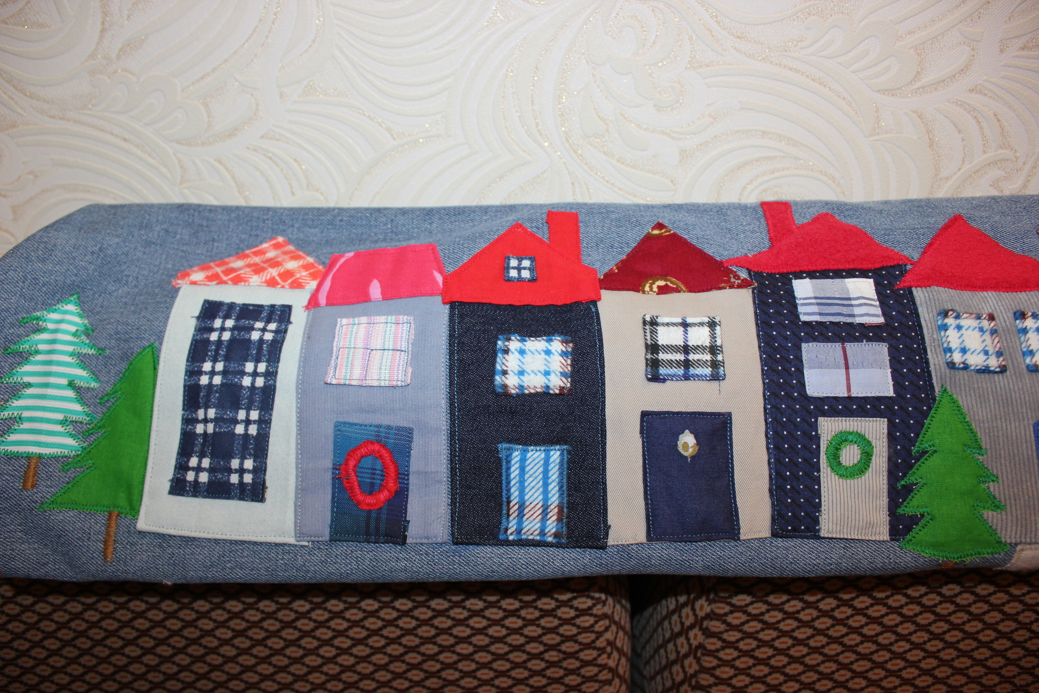 Подушка-валик от сквозняков. В стиле лоскутной аппликации