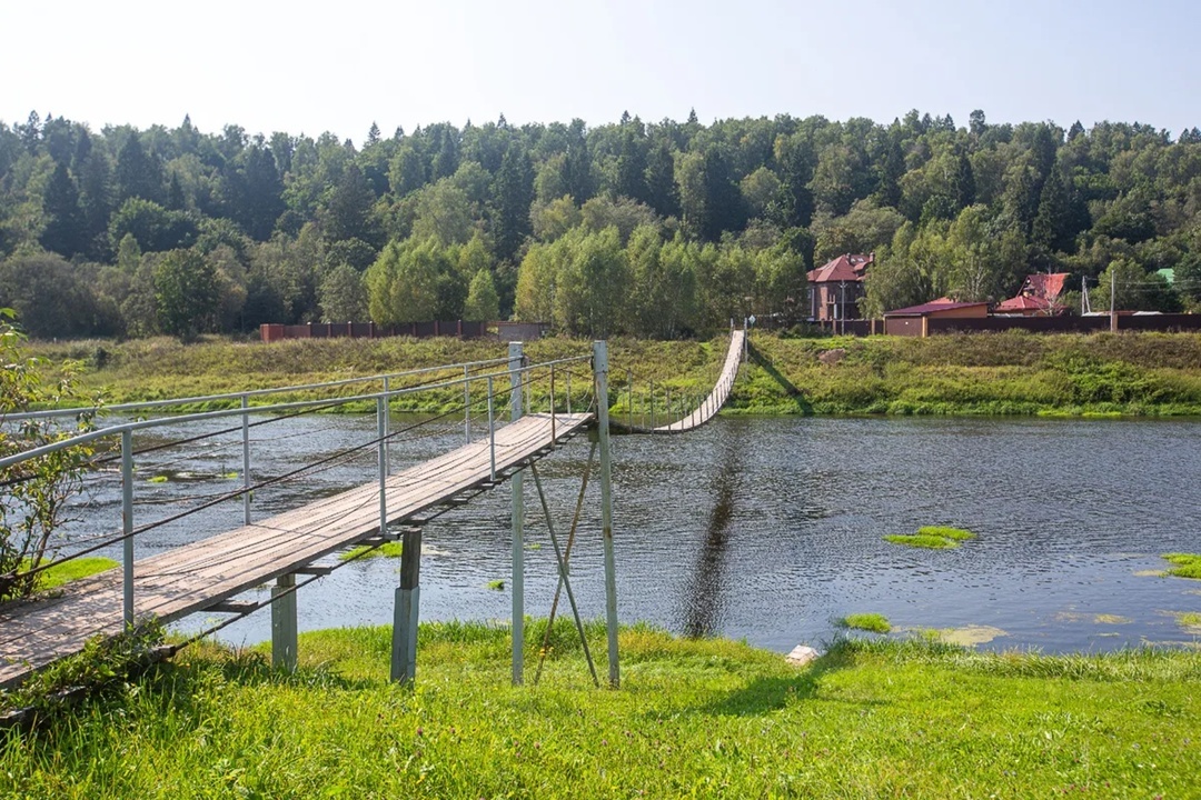 Подвесной мост через Москва-реку, соединяющий посёлок санатория имени Герцена (ближний берег) и село Васильевское (дальний берег).