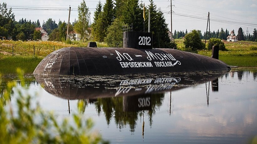 Как появилась эта подводная лодка в Подмосковье? Всё просто. Её установили рядом с коттеджным посёлком "Ла-Манш" для привлечения внимания и рекламы. Одно время на ней даже были надписи.