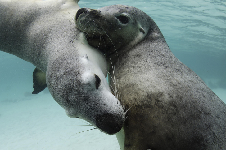 Пара морских млекопитающих даже изобразила перед камерой поцелуй