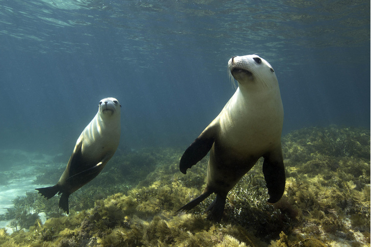 Фотограф Ванесса Миньон стала свидетельницей веселой игры морских львов в бухте у западного побережья Австралии.