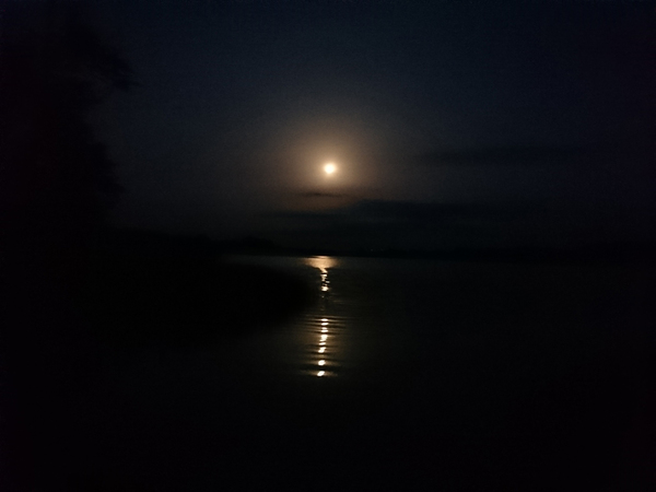 Зато шашлык и прочая еда были куплены в местном круглосуточном (разведка наше всё), пожарена порция шашлыка а нас наградила за усилия восхитительная лунная дорожка на водохранилище. Я честно пытался сделать удачный кадр, но с телефоном это невозможно, так что вам придётся дофантазировать за меня: