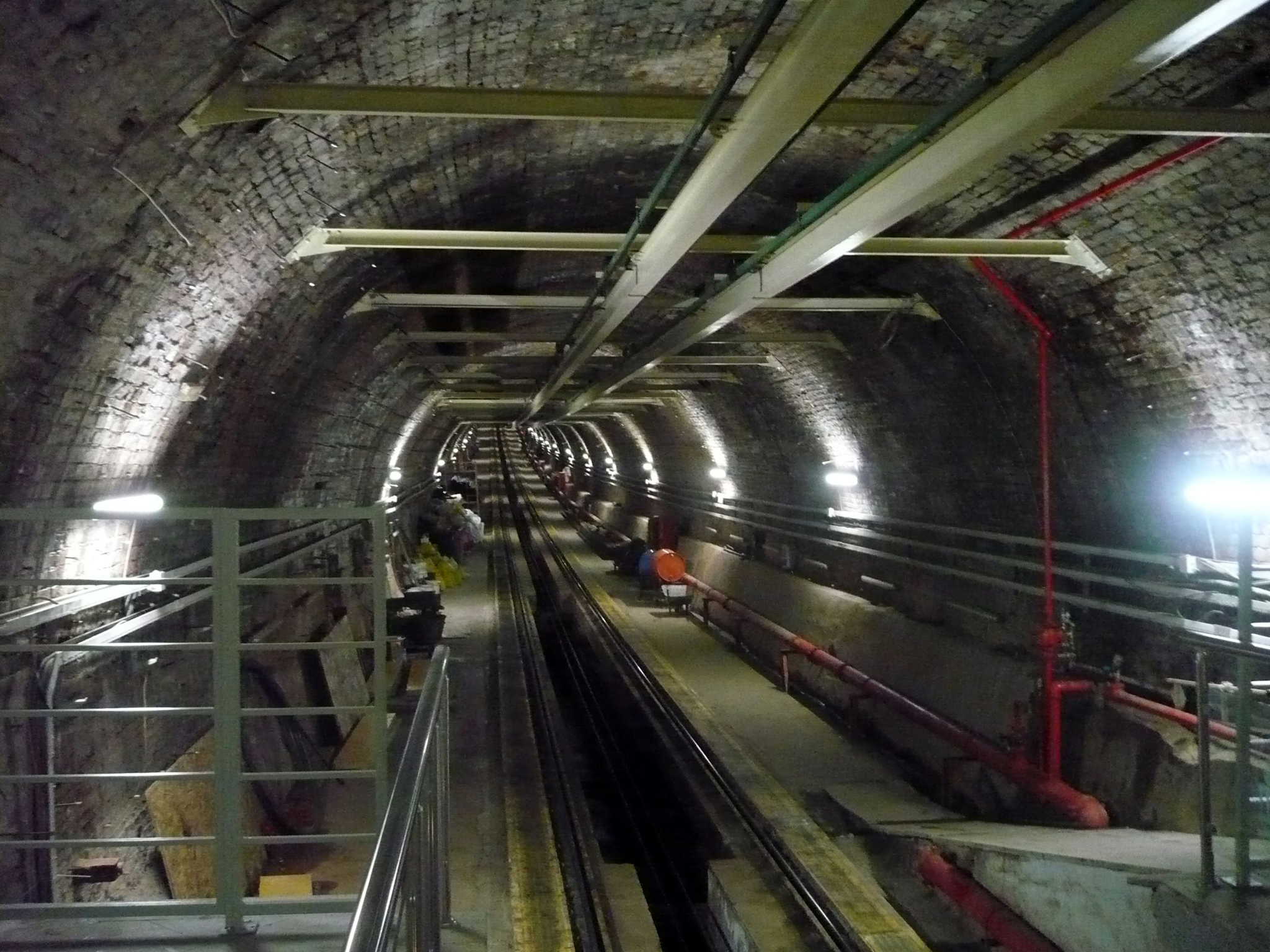 После реконструкции 1971 года линия была преобразована в однопутную с разъездом посередине тоннеля, и только тогда тяга троса была заменена с паровой на электрическую.