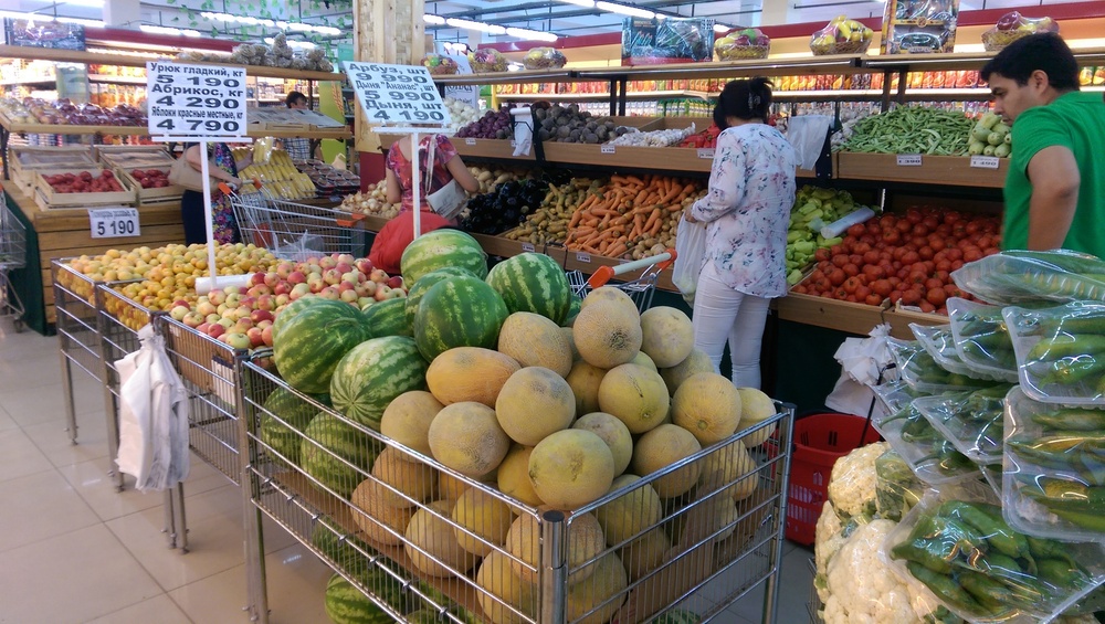 Девушка убирает арбуз куда-то под прилавок, начинает обслуживать другого покупателя. Эм...