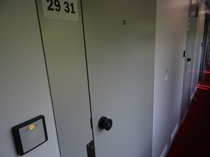 7. Если дверь прикрыть, она сразу захлапывается и без ключа-карточки уже не попасть. Замок громкий