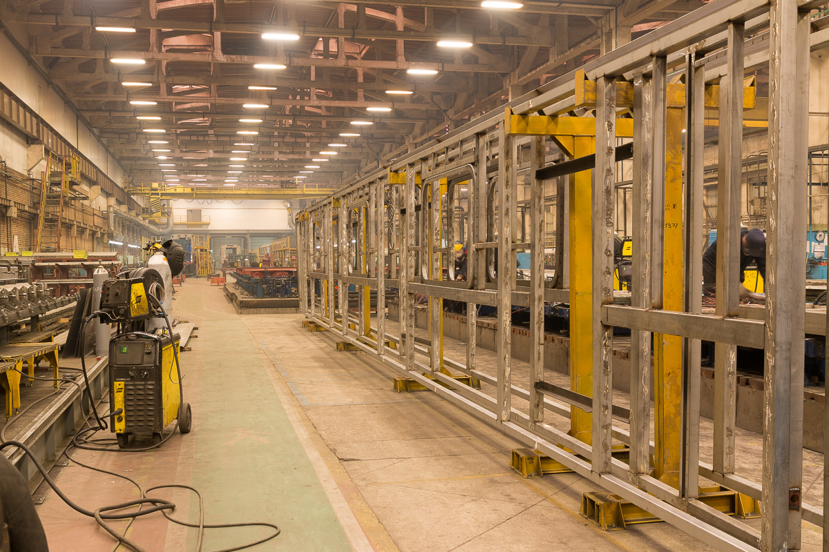 По соседству слева располагается сварочный участок. Первое, что бросается в глаза (а также в нос и уши) - необычная атмосфера: в воздухе кумар от десятков сварочных аппаратов, шум от ударов кувалдами, треска электросварки и визга болгарок, притом процесс этот постоянный и непрекращающийся. В среднем на создание одного вагона уходит 70 часов, и нужно сказать, это довольно неплохой результат.