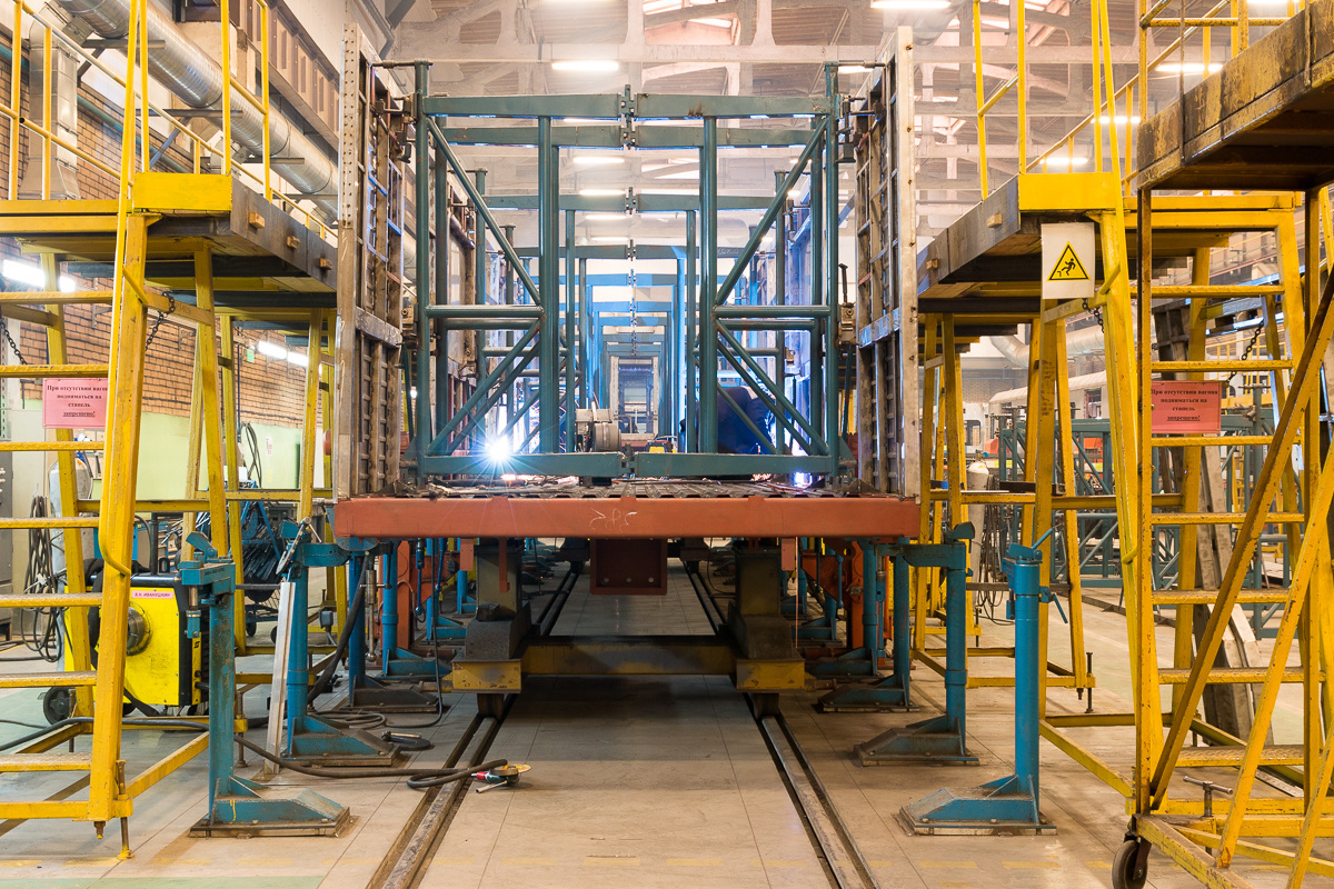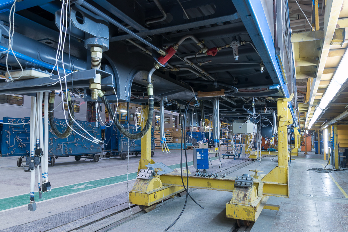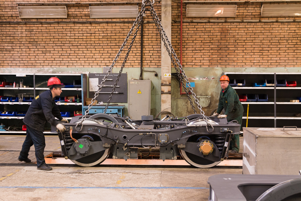 Перейдем к процессу производства. Начинается все с тележечного цеха. Тут происходит сборка и наладка тележек для метровагонов Ока и Русич.