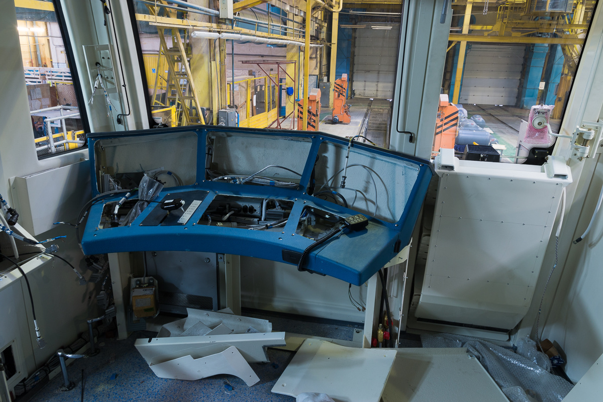 Сверху вниз: подготовка к установке тележек; вагон изнутри на окончательной стадии сборки; "голая" кабина машиниста.