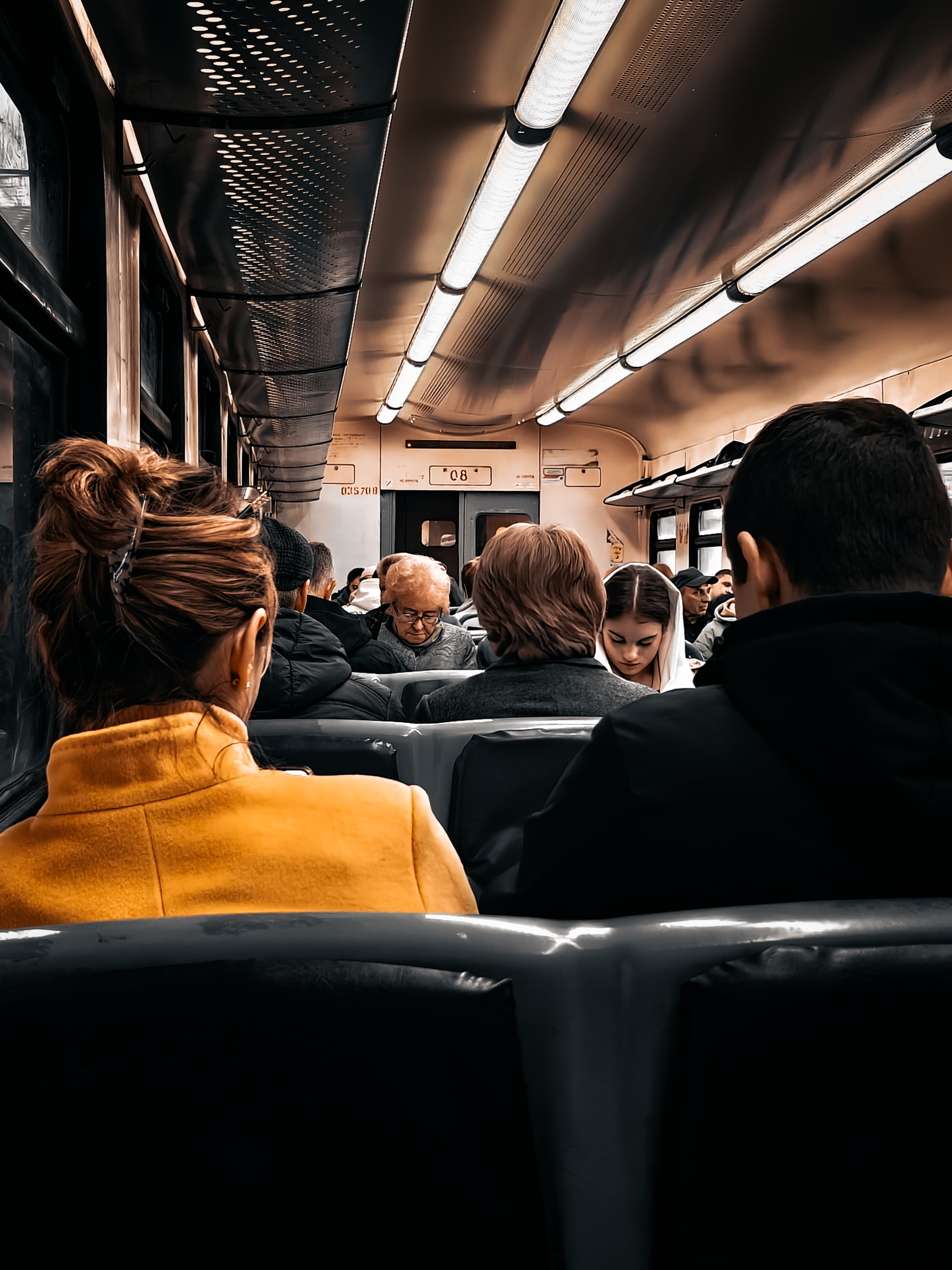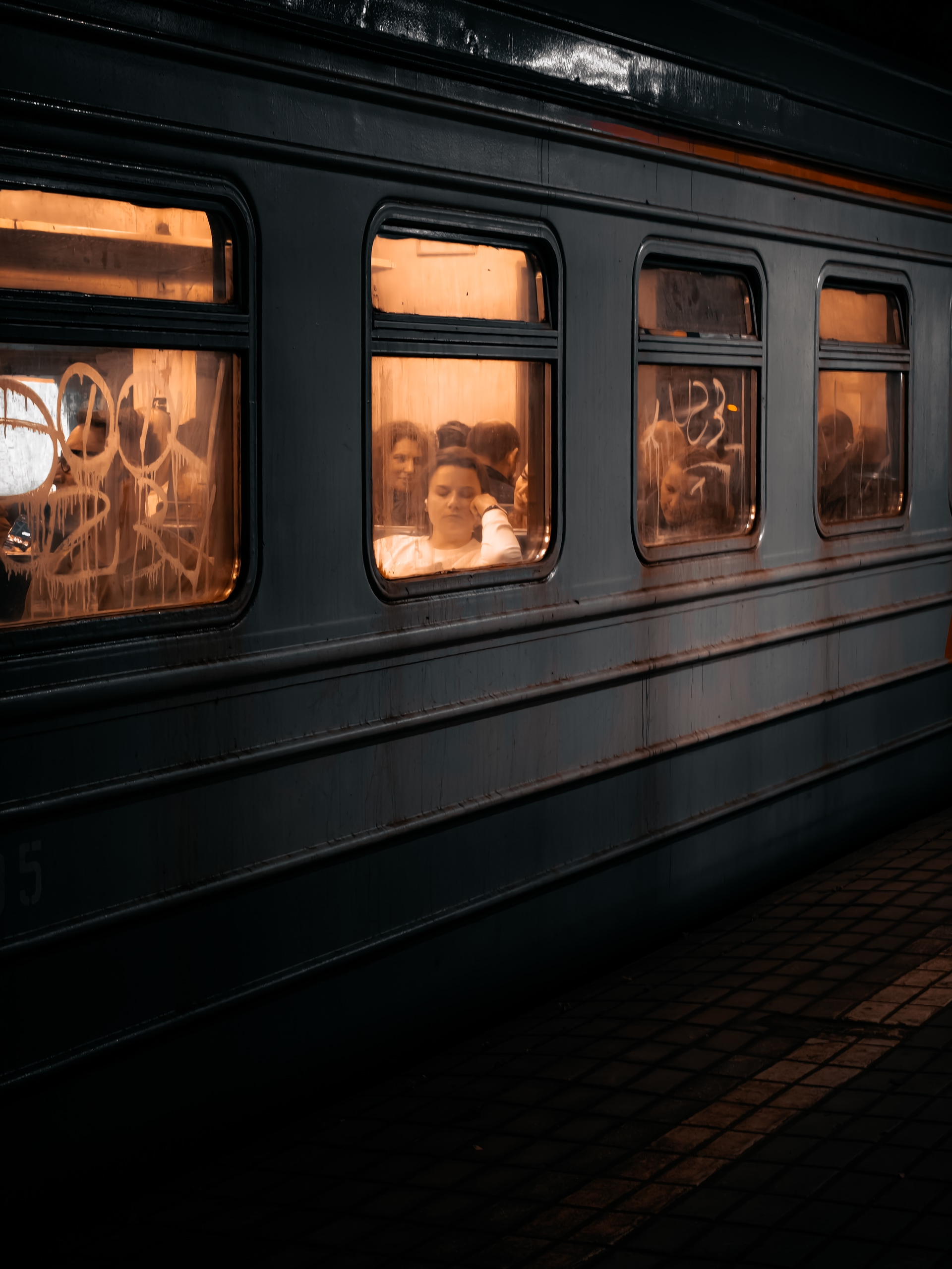 Ловите зарисовки из пригородного поезда. Вот люди, которые куда-то едут с утра. И те же люди, которые возвращаются вечером. Усталые, отрешённые, каждый в своём мире.