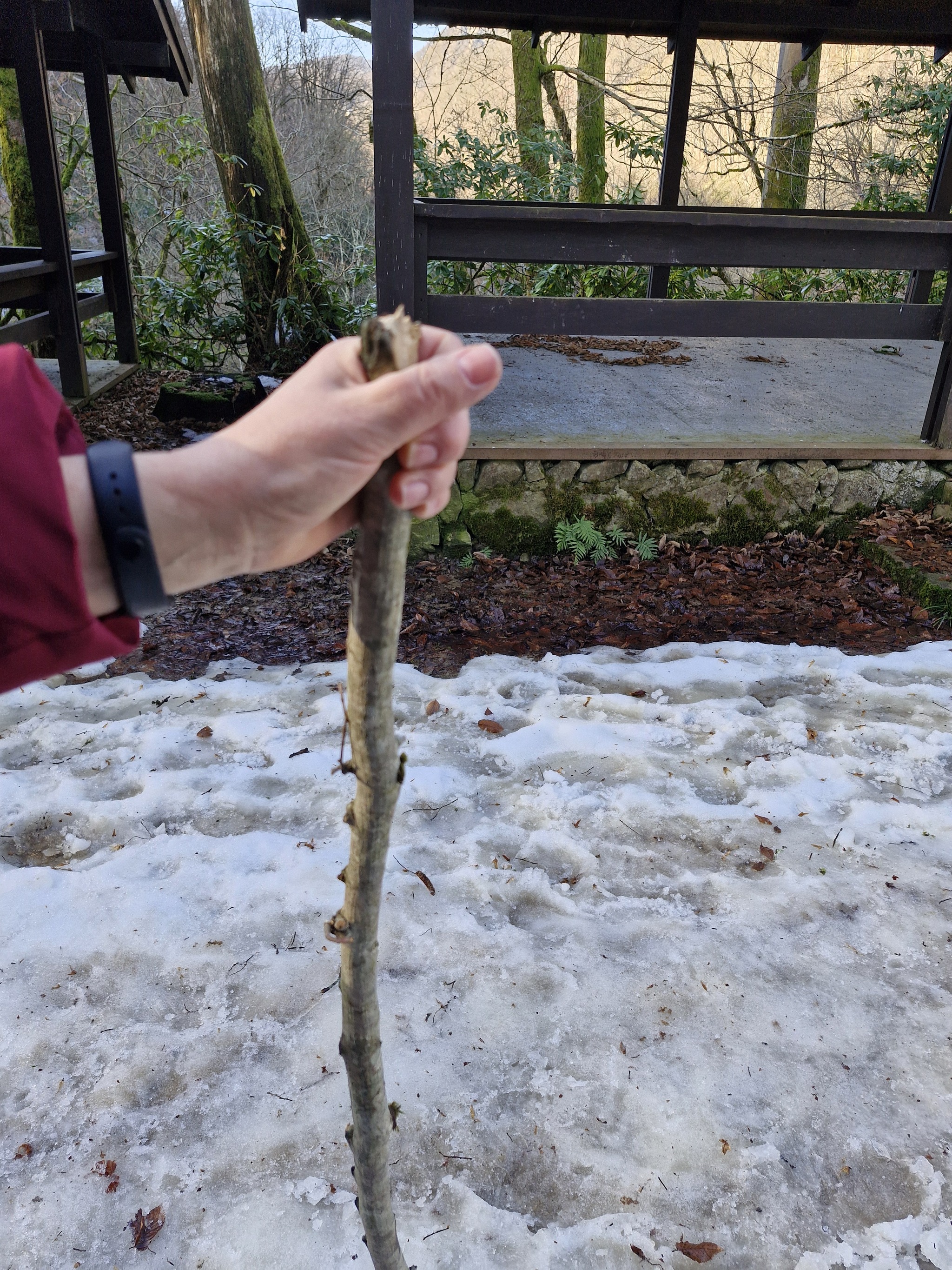 Предварительно, почитала, как добраться. В интернете рекомендуют на 102 автобусе до конечной (д. Ореховка), оттуда ещё около 2 км пешком. Именно так и собиралась добираться, хотя ещё до 102-го нужно было на другом автобусе ехать. В общей сложности на автобусе яндекс-карты показывали 2 часа в пути (с учётом ожидания автобусов). Но мне повезло - опоздала на автобус🙏, пришлось ехать на такси😉. Насколько это было правильным решением - ехать на такси - поняла по мере приближения к пункту назначения. Дорога всё время круто вверх. Примерно на середине пути в горах обнаружила снег к своему удивлению и разочарованию. Местные жители говорят, что такого лет 30 не было. Да и мы в прошлые годы зимой ездили в горы - снега не было.