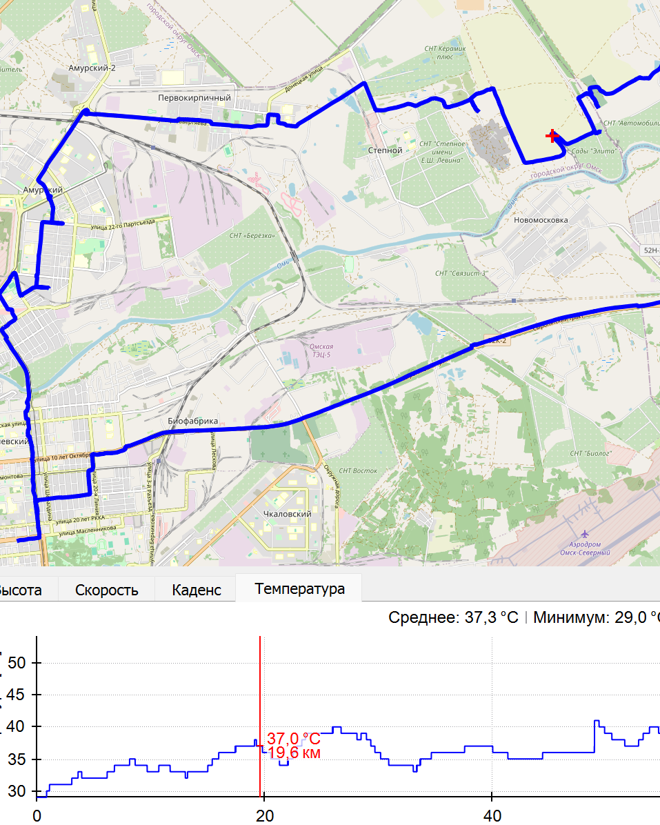 Лицо покрыто толстым слоем крема от загара. Сибирское солнце - беспощадно, даже такого слоя оказалось мало, я подгорел. Не смотрите на облачность, она переменная и ничуть не спасала, судя по велокомпу на улице 30+ всегда