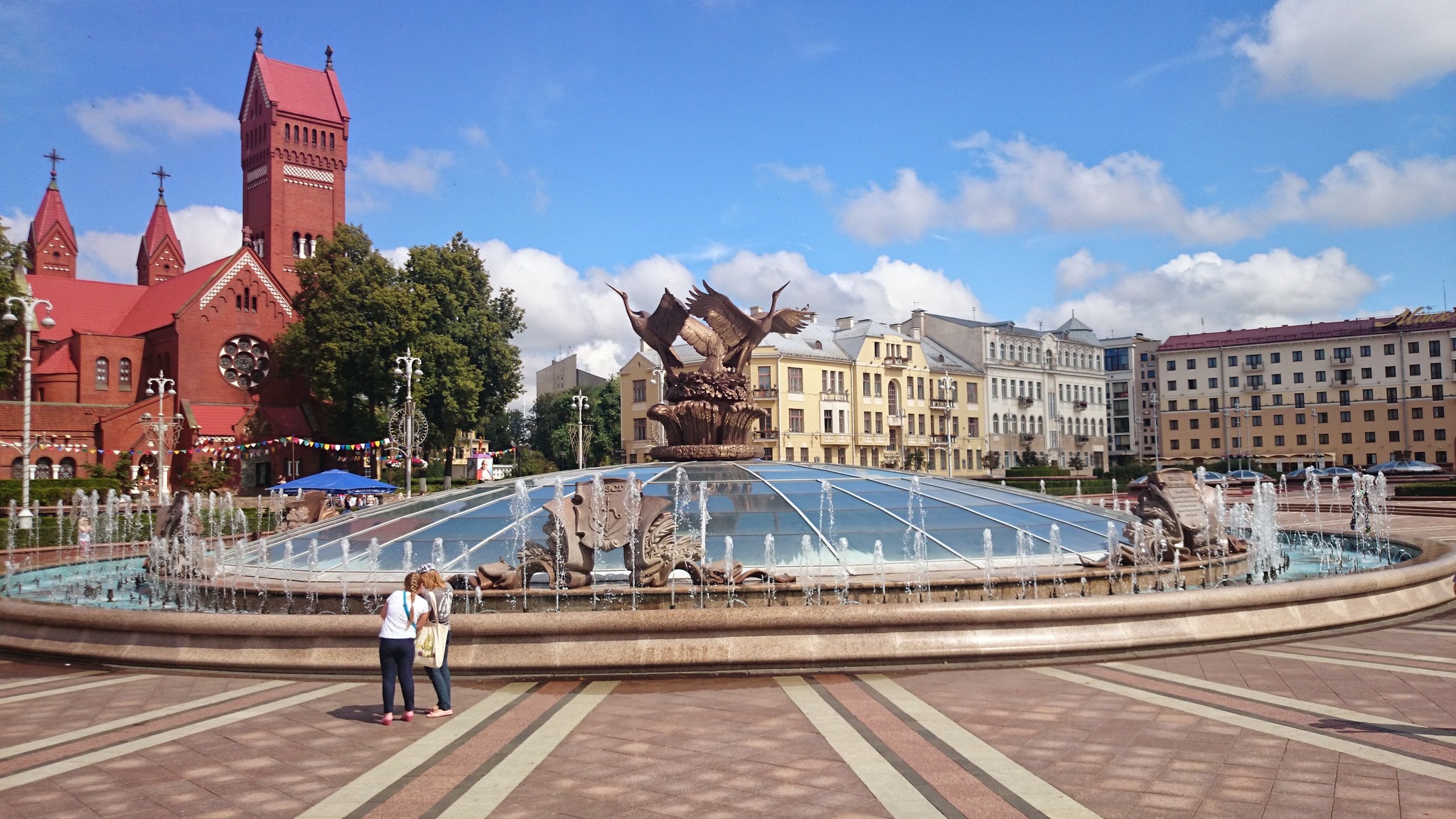 Знаменитый Красный Костёл, слева Белый Дом, справа отель Минск, а под землей торговый центр